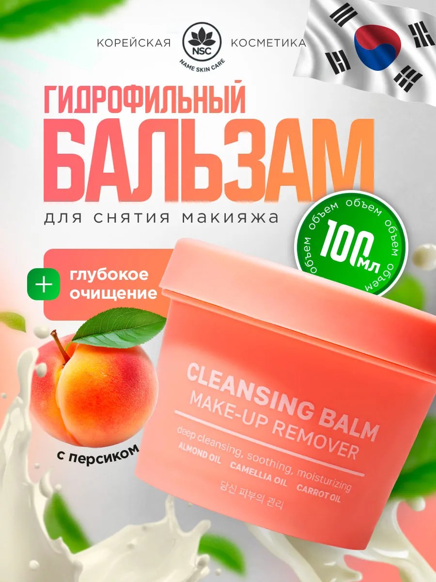 NSC Очищающий гидрофильный бальзам для снятия макияжа с ароматом персика 100мл.