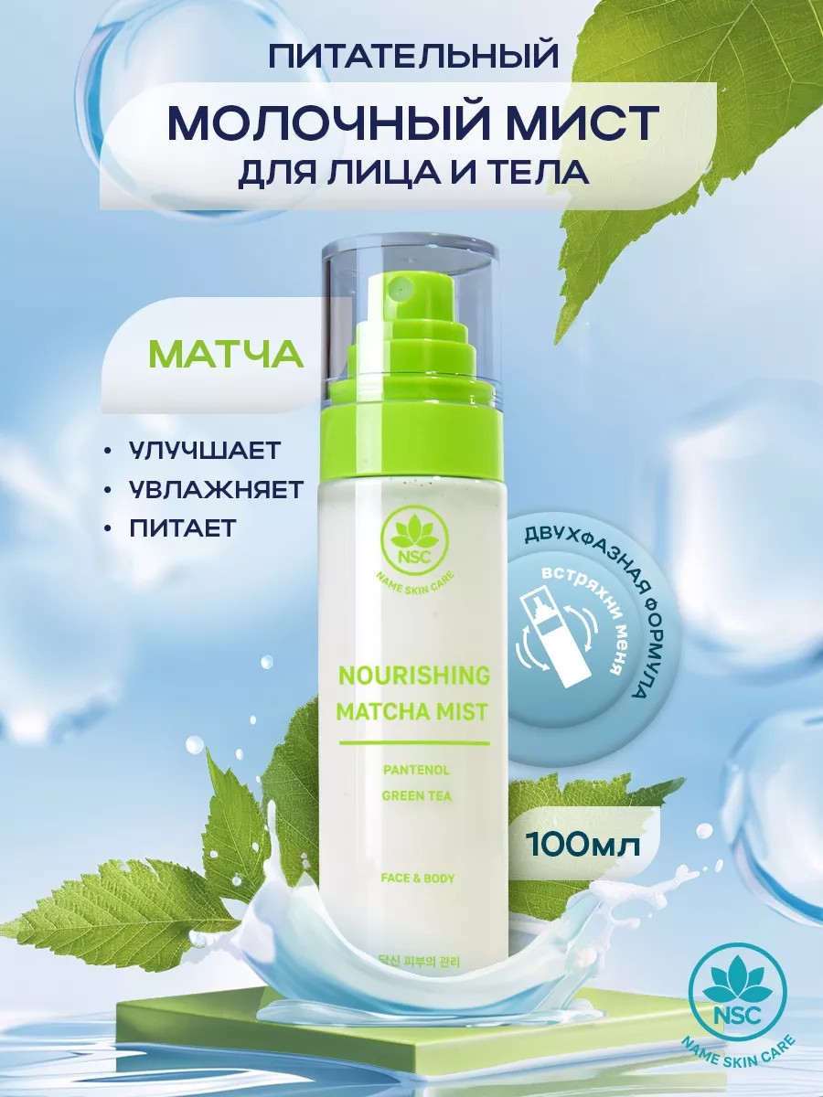 Молочный мист с матчей для лица и тела спасение для обезвоженной и уставшей кожи, восстанавливает ее, придает красивое здоровое сияние и глубоко увлажняет. Матча улучшает эластичность кожи, разглаживает мелкие морщины и выравнивает тон. Пантенол увлажняет, восстанавливает целостность кожных покровов. Зеленый чай оказывает антиоксидантное воздействие и замедляют процесс старения кожи.