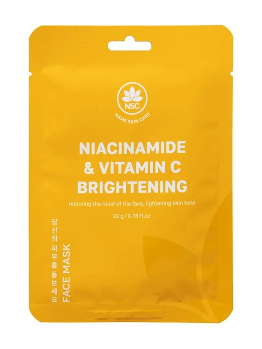 • Vitamin C – strengthens small blood vessels, saturates the skin with moisture, and improves its texture. Sheet mask for the face with niacinamide and vitamin C for even skin tone, 22 g.