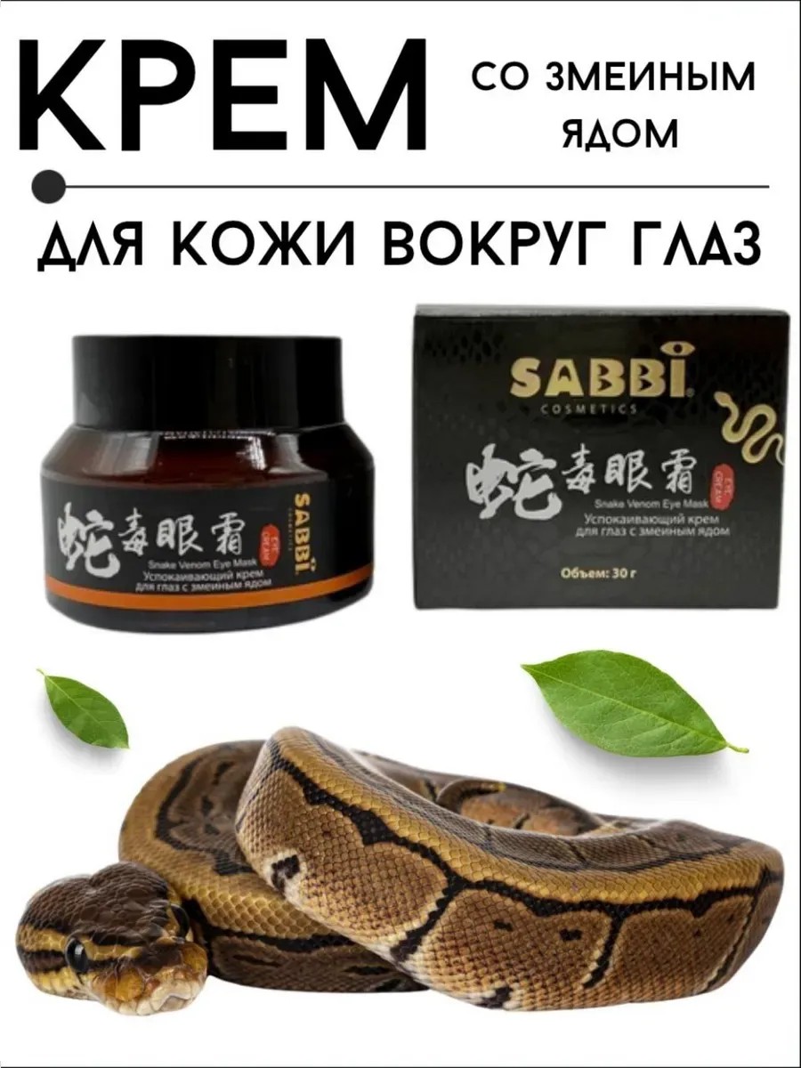 Лифтинг-эффект: Компоненты змеиного яда подтягивают контур глаз, уменьшая мешки и отеки.