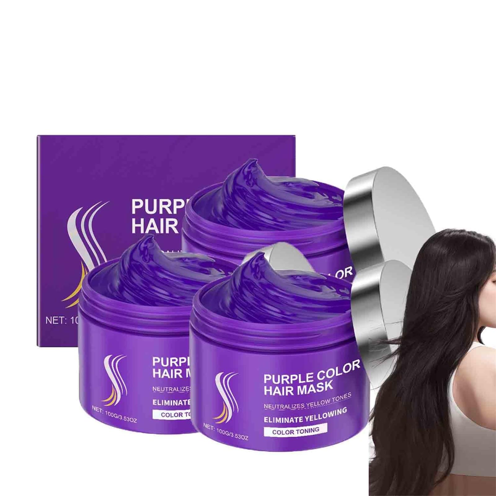 How to use: - Simply apply it to clean, damp hair, leave for 5-10 minutes, then rinse thoroughly. - For optimal results, it is recommended to use a mask 1-2 times a week. Specification: Name: Purple Hair Mask - Keratin Hair Treatment Net Content: 100g Package Content: 1 2 3pcs Purple Keratin Hair MaskSmooth and Fresh Hair lifts off immediately. Hair does not stick after blow-drying. Comb to the ends, suitable for daily care. Banish Dry and Damaged Hair This hair color reviver works to transform dry, brittle hair into soft, silky, and strengthened locks. Stay Cool This purple hair mask helps neutralize brassy tones, keeping your icy blonde cool, bringing a refreshing feeling. Safe Ultra Shiny and Silky Smooth Hair Add moisturizing ingredients to help keep hair soft and smooth, make hair color healthier and brighter. Keratin Purple Hair Mask Effectively adjust hair color, keep cool tones shiny and long-lasting, and the overall texture is healthier. Comment utiliser : - Appliquez-le simplement sur des cheveux propres et humides, laissez reposer pendant 5 à 10 minutes, puis rincez abondamment. - Pour des résultats optimaux, il est recommandé d'utiliser un masque 1 à 2 fois par semaine. Spécification : Nom : Masque capillaire violet - Traitement capillaire à la kératine Contenu net : 100 g Contenu de l'emballage : 1 2 3 pièces Masque capillaire violet à la kératineLisse et frais Les cheveux se décollent immédiatement. Les cheveux ne collent pas après le séchage au sèche-cheveux. Peignez jusqu'au bout, convient aux soins quotidiens. Bannissez les cheveux secs et abîmés Ce raviveur de couleur de cheveux agit pour transformer les cheveux secs et cassants en mèches douces, soyeuses et renforcées. Restez au frais Ce masque capillaire violet aide à neutraliser les tons cuivrés, gardant votre blond glacé au frais, apportant une sensation rafraîchissante. Cheveux lisses ultra brillants et soyeux sûrs Ajoutez des ingrédients hydratants pour aider à garder les cheveux doux et lisses, rendre la couleur des cheveux plus saine et plus lumineuse. Masque capillaire violet à la kératine Ajustez efficacement la couleur des cheveux, gardez les tons froids brillants et durables, et la texture globale est plus saine.