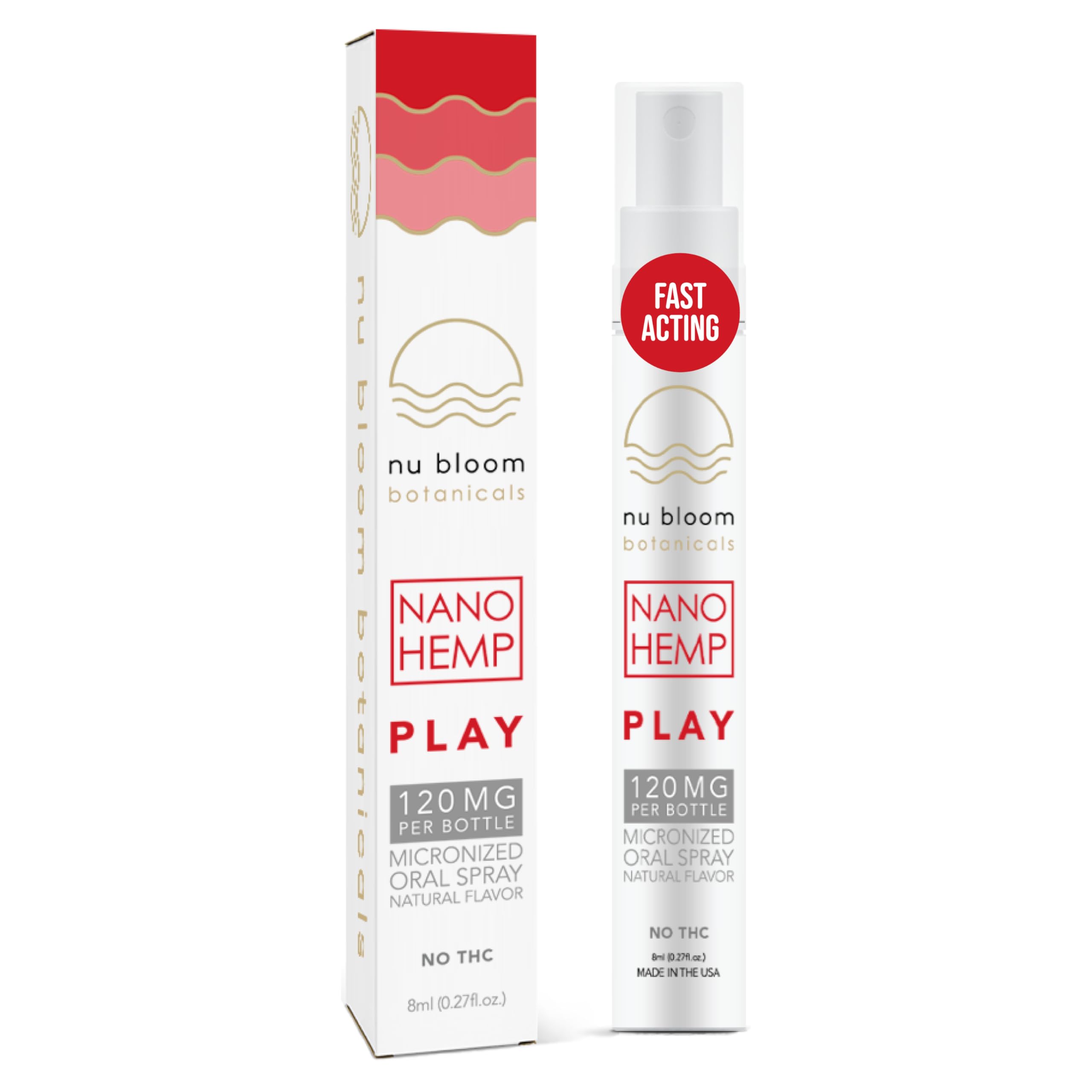 Our organic 'Nano' hemp extract is formulated with traditional arousal-enhancing botanicals – like cordyceps, horny goat weed, and yohimbe bark – to help you relax, get in the mood and enjoy the moment. Proprietary nanotized hemp formula (extracted from organic hemp) 120mg of premium nano hemp extract per bottle Non-psychoactive(no THC) Non-GMO Water-based, alcohol-free formula Other ingredients: Peppermint Oil, Monk Fruit Extract, Green Tea Extract, Organic Olive Oil, Mustard Oil, Sodium Citrate, Tocopherols Certificate of Analysis (available upon request) Handy 8ml travel size spray bottle Certified 1-Year shelf life Recommended use: 2-4 sprays, up to 10 times daily Accurate 1.2mg nano hemp extract per spray (20 servings per bottle) ABOUT NU BLOOM BOTANICALSRecommended Use: Shake well before use. Apply 2-4 sublingual sprays and hold under the tongue for 10 seconds. Our advanced nanomolecule technology ensures fast absorption and effects you can feel in about 10 minutes. Made in the USA with rigorous quality assurance: produced in an FDA-registered, GMP-certified laboratory in Southern California, and thoroughly third-party tested to guarantee purity, potency, and consistency, so you can trust every spray. Convenient portable spray design: each 8mL bottle provides up to 20 precise servings in a travel-friendly format, making it easy to incorporate into your nightly routine whether at home or on the go. Clean, vegan, and THC-free formula: crafted with premium, USA-grown hemp, this alcohol-free, non-psychoactive spray offers a safe and natural solution for daily use, free from harmful additives, pesticides, or synthetic ingredients. Advanced nano hemp technology: utilizes micronized hemp for superior bioavailability and rapid absorption, delivering consistent and effective support to enhance your energy. Natural energy boost: expertly crafted with potent adaptogens like Cordyceps and Muira Puama, combined with fast-absorbing nano hemp extract to enhance your stamina, sharpen focus, and elevate vitality all day long.