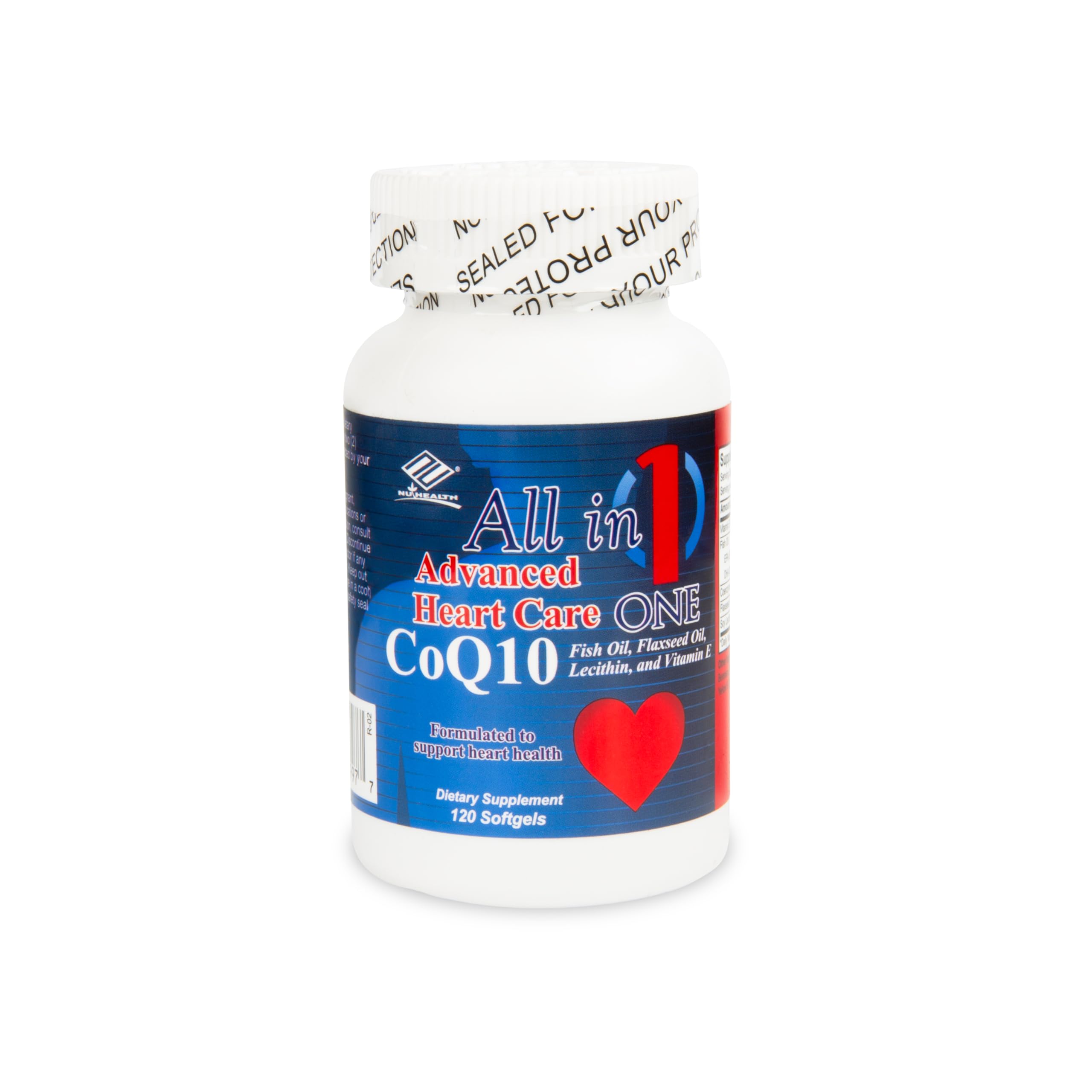 Nu-Health All in One 1 Advanced Heart Care Supplement Omega-3 Fish Oil Flaxseed Oil CoQ10 Soy Lecithin & Vitamin E Supports Heart Health Circulation & Lipid Balance 120 Softgels