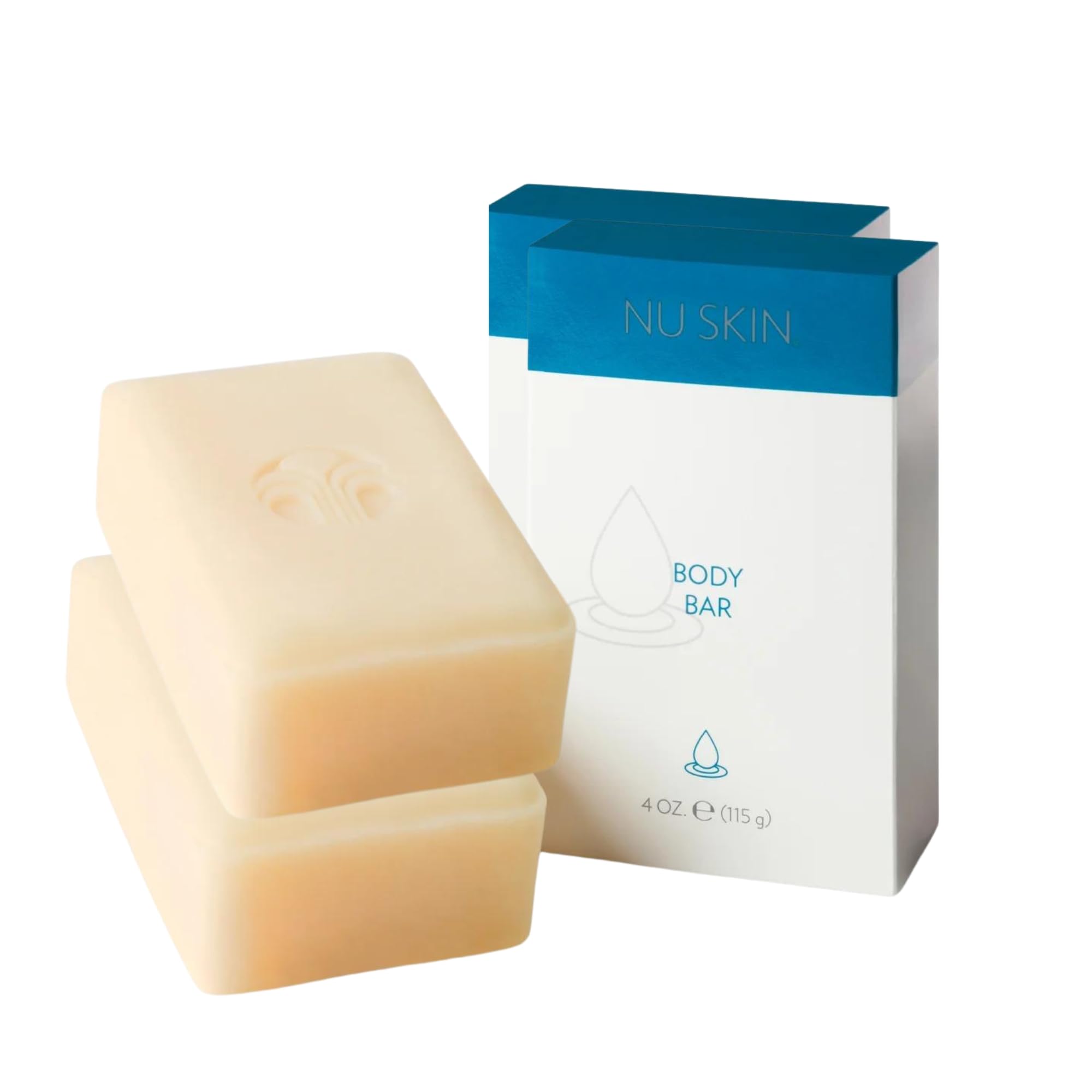 100% Soap Free. This pH balanced bar does not contain harsh drying additives, coloring, or dyes. Available in a single bar wrapped in gold paper and enclosed in a white case with a gold Nu Skin logo imprinted on the front. Also available in a convenient, environmentally-friendly refill pack that includes five Body Bars wrapped in gold paper without the traditional case. Rinses away completely without leaving an unpleasant film or residue. Utilizes non-drying cleansers that leave the skin completely clean, and aloe vera, tocopheryl acetate (vitamin E), and jojoba oil, impressive conditioners that leave skin soft and smooth. Uses the humectant NaPCA to bind moisture to the skin. Includes a scent derived from natural grapefruit extract for a fresh fragrance. Protects precious moisture levels and makes your skin feel luxuriously soft and touchable. Safety-Allergy-Dermatologist Tested.