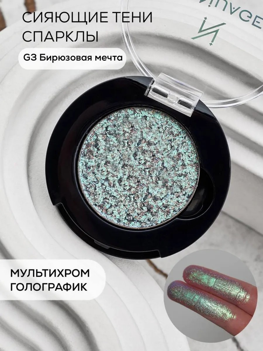 Тени для век BeNuage № G3 Бирюзовая мечта - блестящие яркие мультихромные голографики благодаря текстуре с мерцающей россыпью голографических блесток, придают блеск и сияние, создавая впечатление магнитной голограммы на веках.
