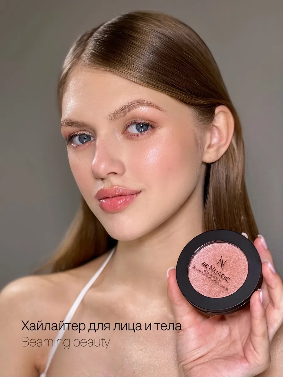 BeNuage face and body highlighter is your indispensable assistant in creating a beautiful look! This dry-textured face highlighter will give you a natural glow and a fresh, well-groomed appearance.