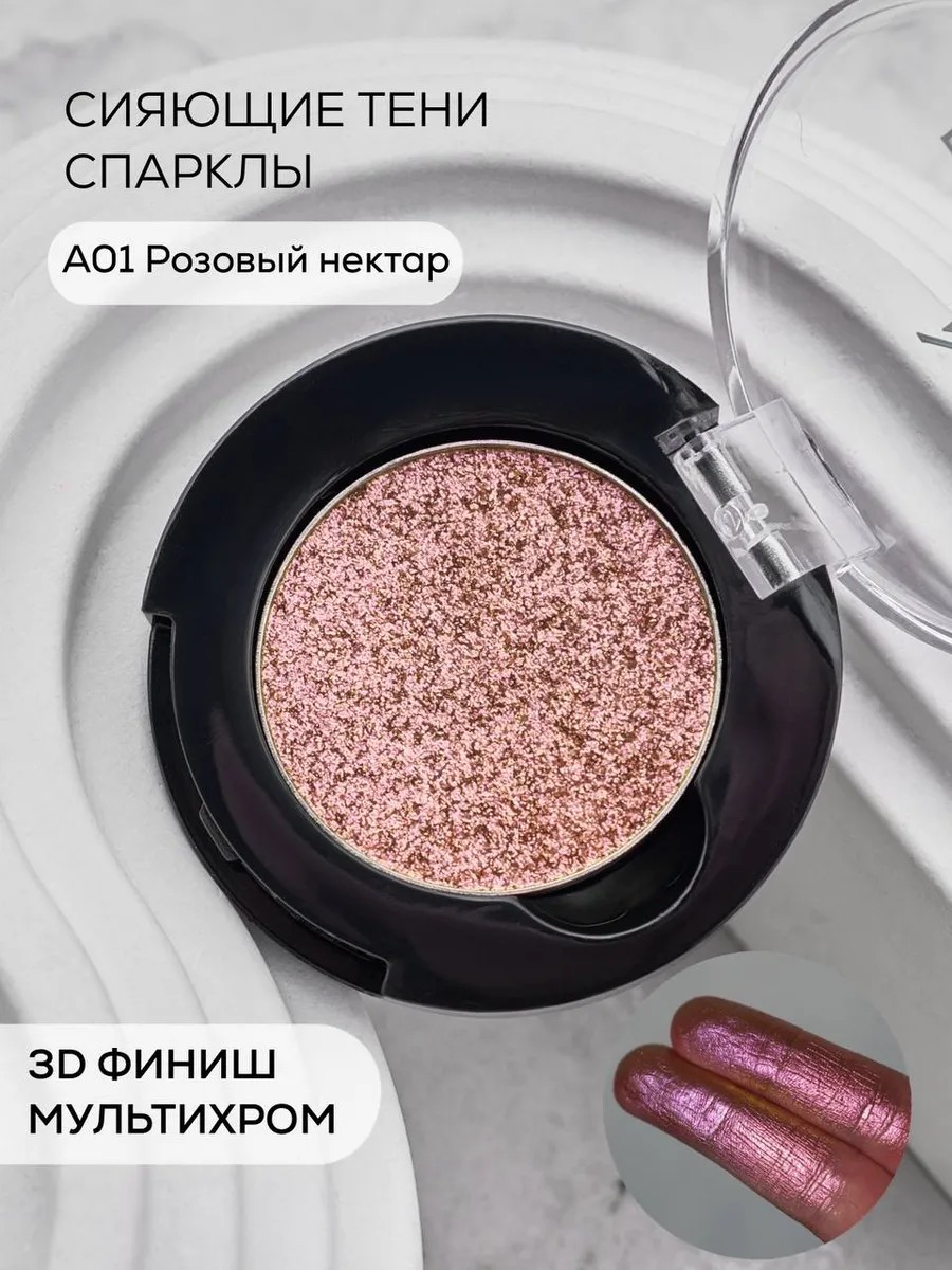 Тени для век BeNuage № A01 Розовый нектар - сияющие разноцветные спарклы с мерцающим «влажным» финишем - идеальны для создания эффекта многогранного сияния на вашей коже. Блестящие яркие мультихромные хамелеоны красиво подсвечивают кожу, подчеркивают цвет глаз и освежают взгляд.