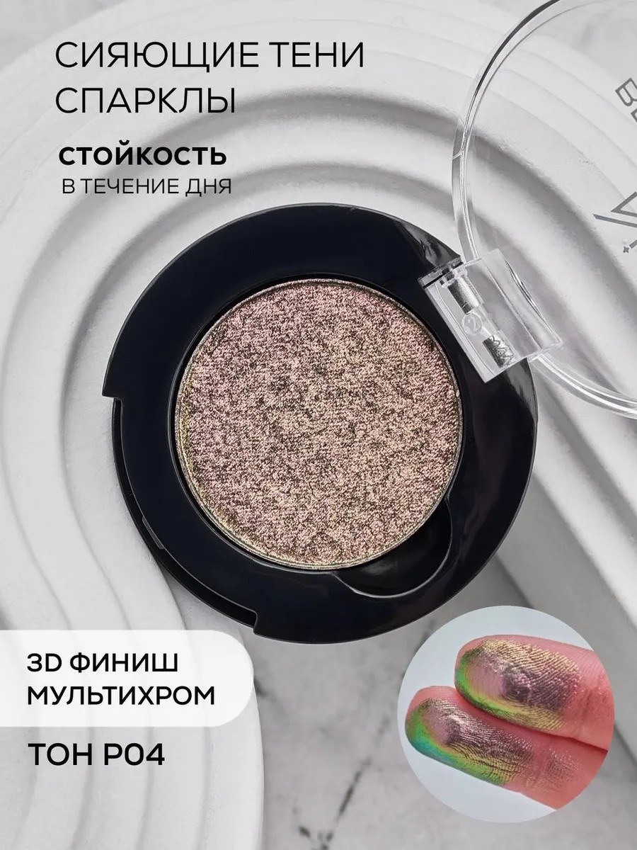 Тени для век BeNuage № P04 Фортуна - сияющие разноцветные спарклы с мерцающим «влажным» финишем - идеальны для создания эффекта многогранного сияния на вашей коже. Блестящие яркие мультихромные хамелеоны красиво подсвечивают кожу, подчеркивают цвет глаз и освежают взгляд.