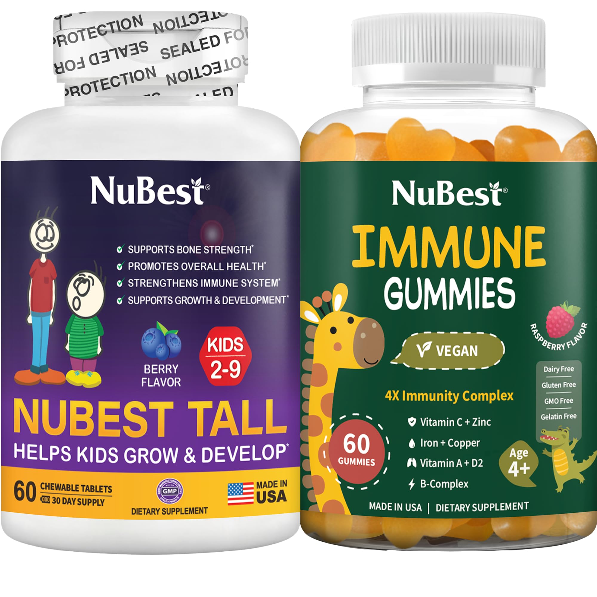 Fits Naturally Into Daily Routines: Easy to take at home, with meals, or as part of a morning or after-school routine. Kid-Friendly Easy to Take: Fun animal-shaped chewables and tasty raspberry gummies help encourage daily use. Designed for Kids Teens: NuBest Tall Kids Chewables are made for ages 2-9 Immune Gummies are suitable for kids ages 4 . Designed for Toddlers Young Children: NuBest Tall Kids Chewables are made for ages 2–9 Immune Gummies are suitable for kids ages 4 . Complete Daily Wellness for Kids: Combines a kids' multivitamin chewable with immune-support gummies for everyday nutrition.