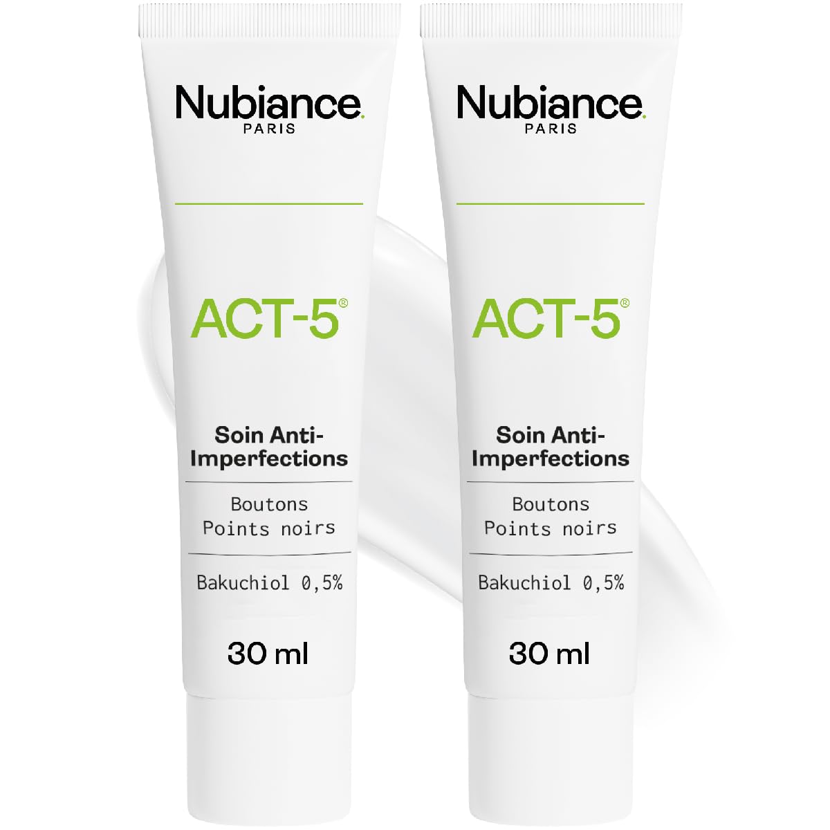 NUBIANCE - ACT-5 2x30ml - Crème anti-acné visage - Régulation sébum - Pour tous types de peau - Sans effets sécheresses -Anti-imperfections… 60ml (Lot de 2)