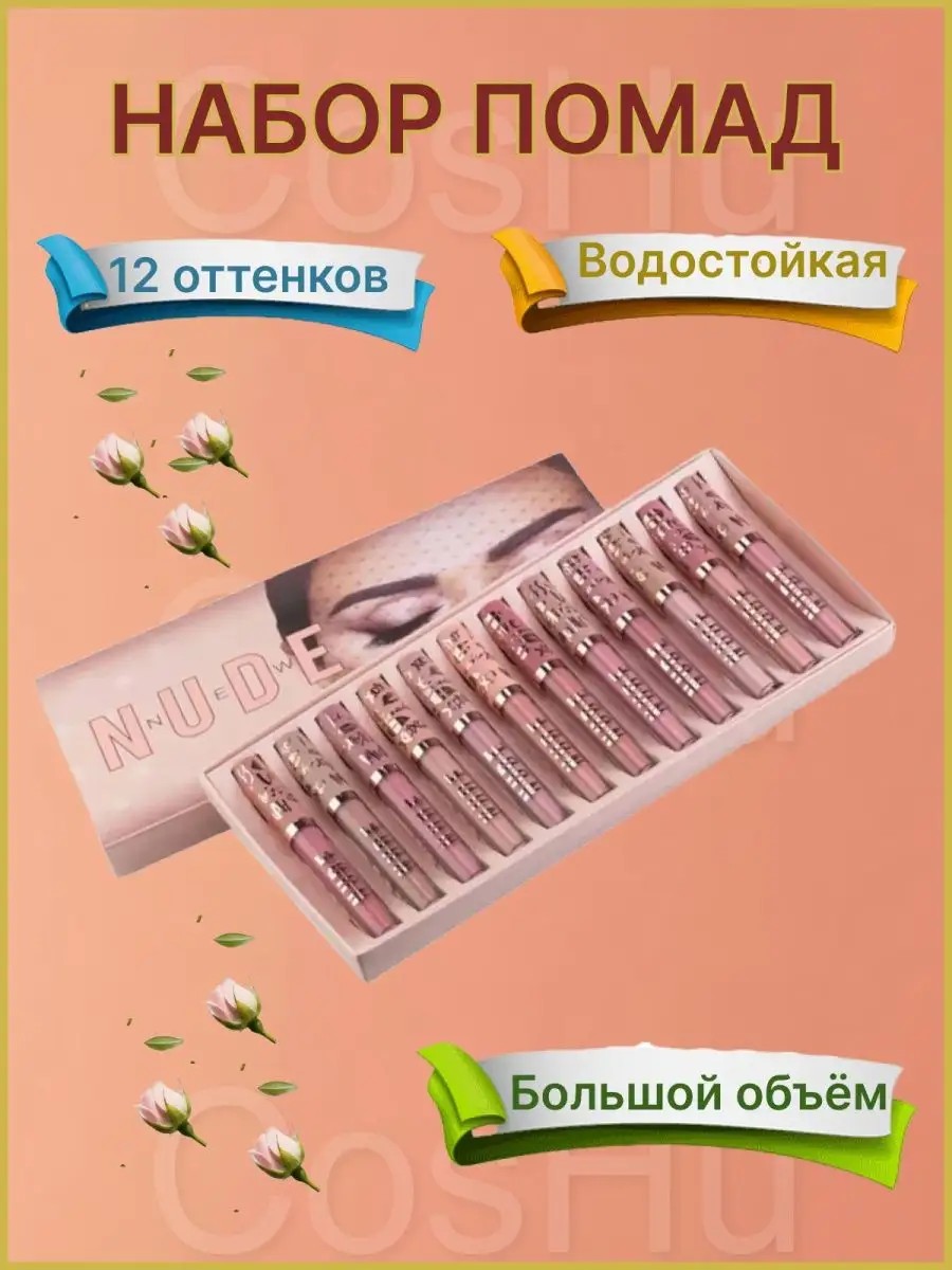 Профессиональная помада - это набор помад для губ из 12 штук. Подводка для губ идеально ложится на губы и не требует подкрашивания. 12 оттенком матовых нюдовых помад - это прекрасный подарок жене, девушке, маме, дочери, коллеге на праздник, выпускной. Водостойкая помада не боится воды и кофе. Помада для губ матовая, для женщин и девочек. Губная помада увлажняющая, гипоаллергенная, для всех типов кожи. Помада стойкая, держится весь день. Помада красная, розовая, коричневая, пудровая, и другие оттенки для создания дневного макияжа, вечернего макияжа, повседневного макияжа. Аналог maybelline помада, помада maybelline new york, nyx помада, помада maybelline, stellary помада, golden rose помада, помада nyx, помада maybell