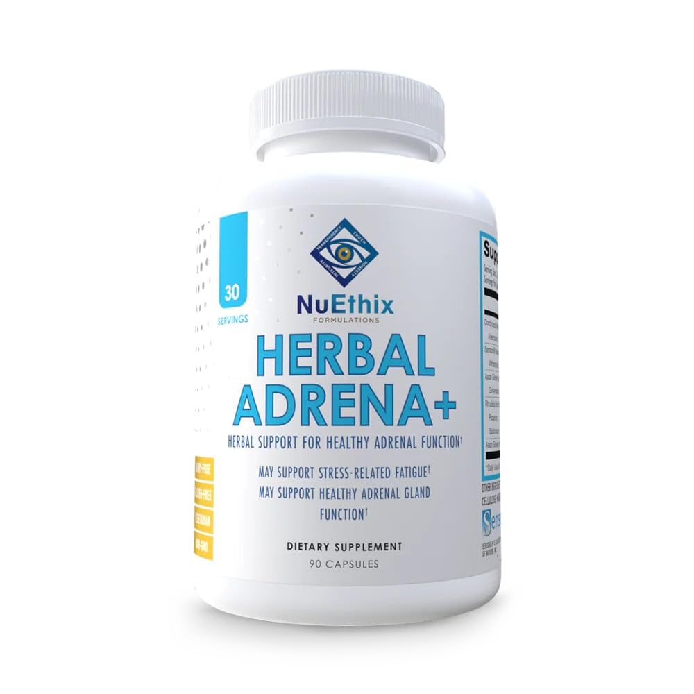 NuEthix Formulations Herbal Adrena+ Adrenal Support Supplements for Women & Men Cortisol Support Improve Energy Levels & Mood Includes Cordyceps & Ashwagandha Non-GMO Gluten Free 30 Servings