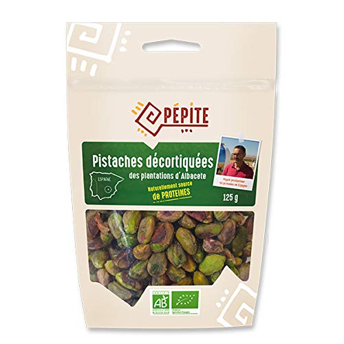 Organic Shelled Pistachios: These pistachios are presented without their shells. They are primarily intended for culinary use. They are grown in Spain, and come from the famous Kermann pistachio variety of Iranian origin: they have a magnificent green color and, above all, a very fine flavor. 125 gOrganic Shelled Pistachios from Albacete Plantations 125g. Nugget. Mediterranean sweet grocery store. Sweet world grocery store. Sweet grocery store. Pistaches décortiquées Bio : Ces pistaches sont présentées sans leur coque. Elles sont destinées prioritairement à un usage culinaire. Elles sont cultivées en Espagne, et sont issues de la célèbre variété de pistaches Kermann d'origine iranienne : elles sont d'une magnifique couleur verte et surtout d'une saveur très fine. 125 gPistaches Décortiquées Des Plantations D'Albacete Bio 125G. Pépite. Epicerie sucrée méditerranéenne. Epicerie du monde sucrée. Epicerie sucrée.