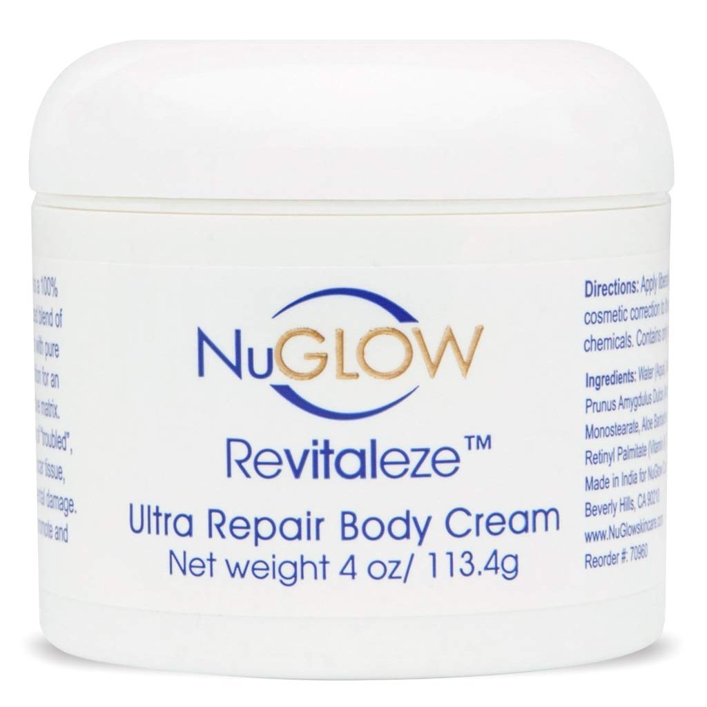 NuGlow Revitaleze Ultra Repair Body Cream combines a proprietary blend of Ayurvedic restorative herbs and vital nutrients with MSM plus vitamin D. This ultra-rich nourishing cream is excellent for daily use to promote hydration, and maintain healthy, beautiful skin all over your body. Use Revitaleze Body Cream on any area where skin is dry or damaged by sun and other environmental factors. Product Size: 4 oz NuGlow offers an unconditional 60-day money-back guarantee! Use NuGlow for 60 days. If you're not completely satisfied, simply return the unused portion for a full refund. NuGlow Inc. is a specialty skincare company that is committed to helping people live a healthy life beautifully. The company was founded on the principle of providing customers with high-quality anti-aging skincare products and service at affordable prices!