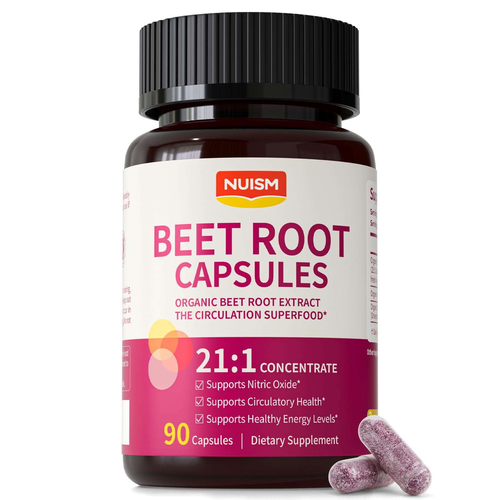 NUISM Beet Root Capsules with Organic Beetroot Extract Beets Supplement to Support Circulation & Blood Flow Nitric Oxide & Heart Health Antioxidant Formula