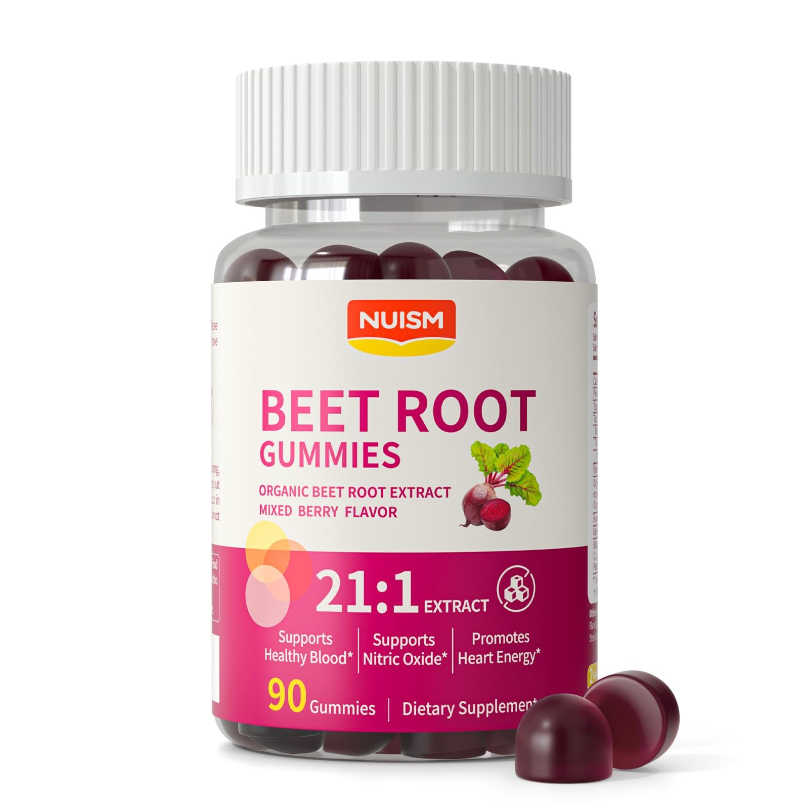 NUISM Organic Beet Root Gummies, Mixed Berry Flavor Supplements,Natural Extract, 21:1 Concentrate, Sugar Free Chews, Energy, Vitality & Performance Support, Beetroot Gummies