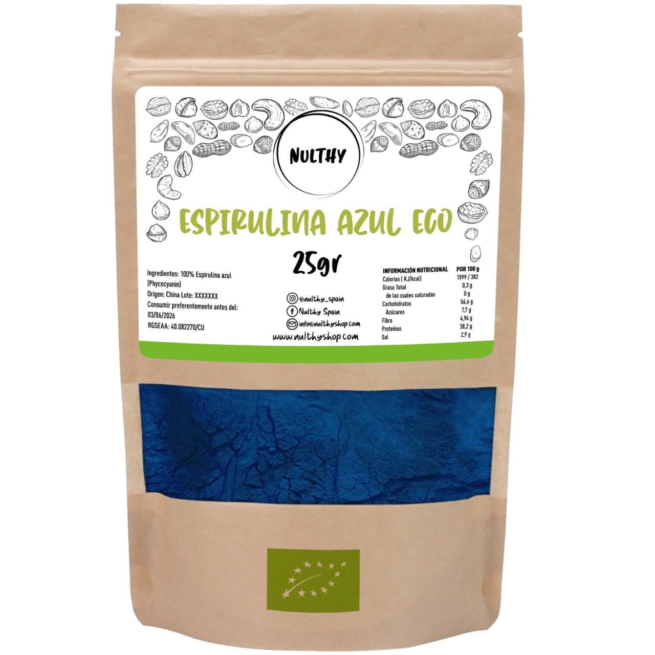 Blue Spirulina Powder 25g - Pure and Natural Blue Spirulina, Golden Blue Spirulina for Smoothies, Desserts and Healthy Recipes, Superfood Rich in Protein, Antioxidants and VitaminsVersatile Superfood: Take advantage of the unique properties of this "blue gold" to revitalize your body. Ideal for vegetarians and vegans looking for healthy protein sources. ✓ Natural and Pure Product: 100 organic spirulina powder, with no additives or preservatives. Designed for those who seek the best in their daily diet. Choose NULTHY for mindful eating! Perfect for Smoothies and Desserts: With our blue spirulina powder, add a nutritious touch and vibrant color to your smoothies, desserts, and meals. Rich in Protein and Antioxidants: Our blue spirulina powder is a powerful source of protein and antioxidants that promote overall health. Start feeling better every day! High-Quality Blue Spirulina: Enjoy the benefits of this superfood, pure and natural blue spirulina powder, ideal for improving your well-being. Add it to your favorite smoothies and recipes!NULTHY - Spiruline Bleue en Poudre 25g - Spiruline Bleue Pure et Naturelle, Spiruline Bleue Dorée pour Smoothies, Desserts et Recettes Saines, Superaliment Riche en Protéines, Antioxydants VitaminesDESCRIPTION DU PRODUIT Spiruline Bleue en Poudre 25g - Spiruline Bleue Pure et Naturelle, Spiruline Bleue Dorée pour Smoothies, Desserts et Recettes Saines, Superaliment Riche en Protéines, Antioxydants et VitaminesSuperaliment polyvalent : Profitez des propriétés uniques de cet « or bleu » pour revitaliser votre corps. Idéal pour les végétariens et végétaliens à la recherche de sources de protéines saines. ✓ Produit Naturel et Pur : Poudre de spiruline 100 biologique, sans additifs ni conservateurs. Conçu pour ceux qui recherchent le meilleur dans leur alimentation quotidienne. Choisissez NULTHY pour manger consciemment !. Parfait pour les Smoothies et les Desserts : Avec notre poudre de spiruline bleue, donnez une touche nutritive et une couleur vibrante à vos smoothies, desserts et repas. Riche en protéines et antioxydants : Notre poudre de spiruline bleue est une puissante source de protéines et d'antioxydants qui favorisent la santé générale. Commencez à vous sentir mieux chaque jour !. Spiruline Bleue de Haute Qualité : Profitez des bienfaits de ce superaliment, la poudre de spiruline bleue, pure et naturelle, idéale pour améliorer votre bien-être. Ajoutez-le à vos smoothies et recettes préférés !.