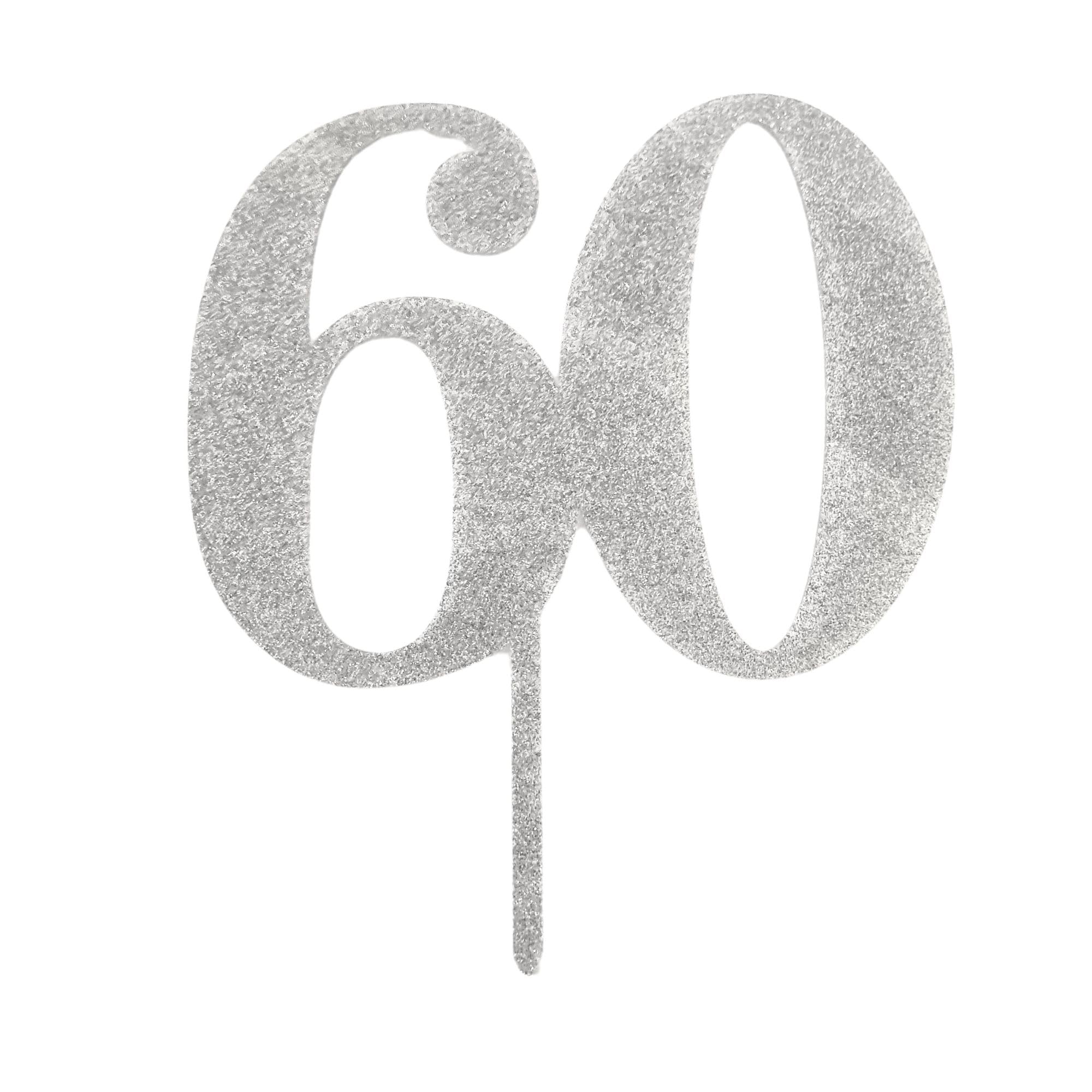 Number 60 HAPPY BIRTHDAY Silver Glitter ACRYLIC Cake Topper