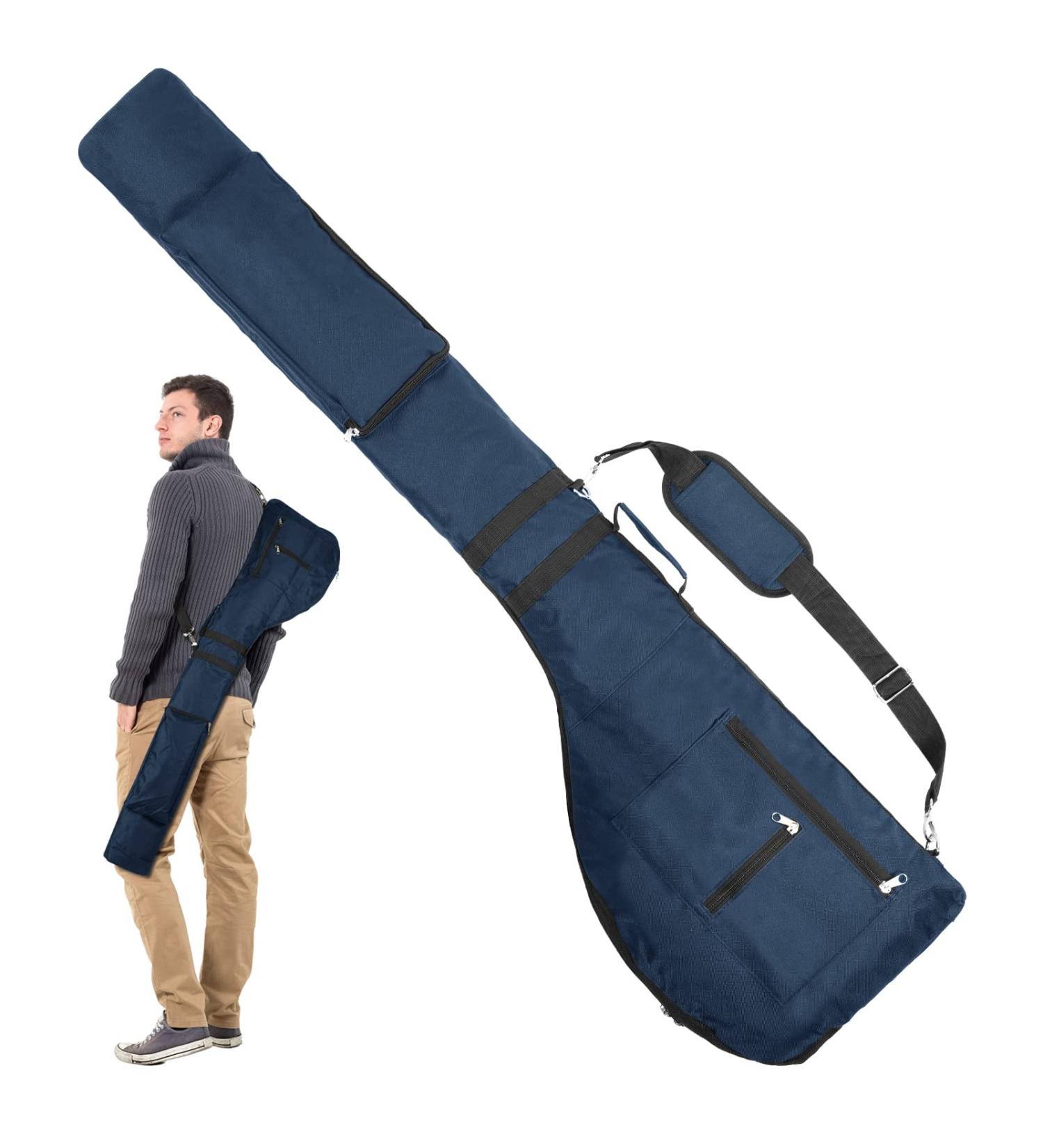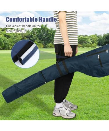 ?Ideal Gift?The golf club travel bag come with nylon fabric, fashionable and classical to match your clubs and keep your clubs in prestige condition. It's a must-have set for all golfing enthusiasts, also a perfect Christmas gift for your friend who is a golf fan. ?Foldable and Easy to Carry?A foldable golf club bag for easy travel. Even when it's unfolded, it takes up so little space that you can put it in the trunk, camper, or plane. ?Premium Material?Made of nylon fabric, the dual density padded interior ensures a soft feel. The zipper closure prevents damp air and rain from damaging the club. ?Humanized Design?The bottom of the golf gun bag is made of non-slip material to avoid slipping. Padded shoulder straps provide extra comfort, and convenient side handles make it easy to lift or put down. ?Large Capacity Golf Club Bag?This golf foldable practice gun bag holds 8-10 golf clubs, 2 pockets for balls, ball TEs, gloves or anything else you may need.