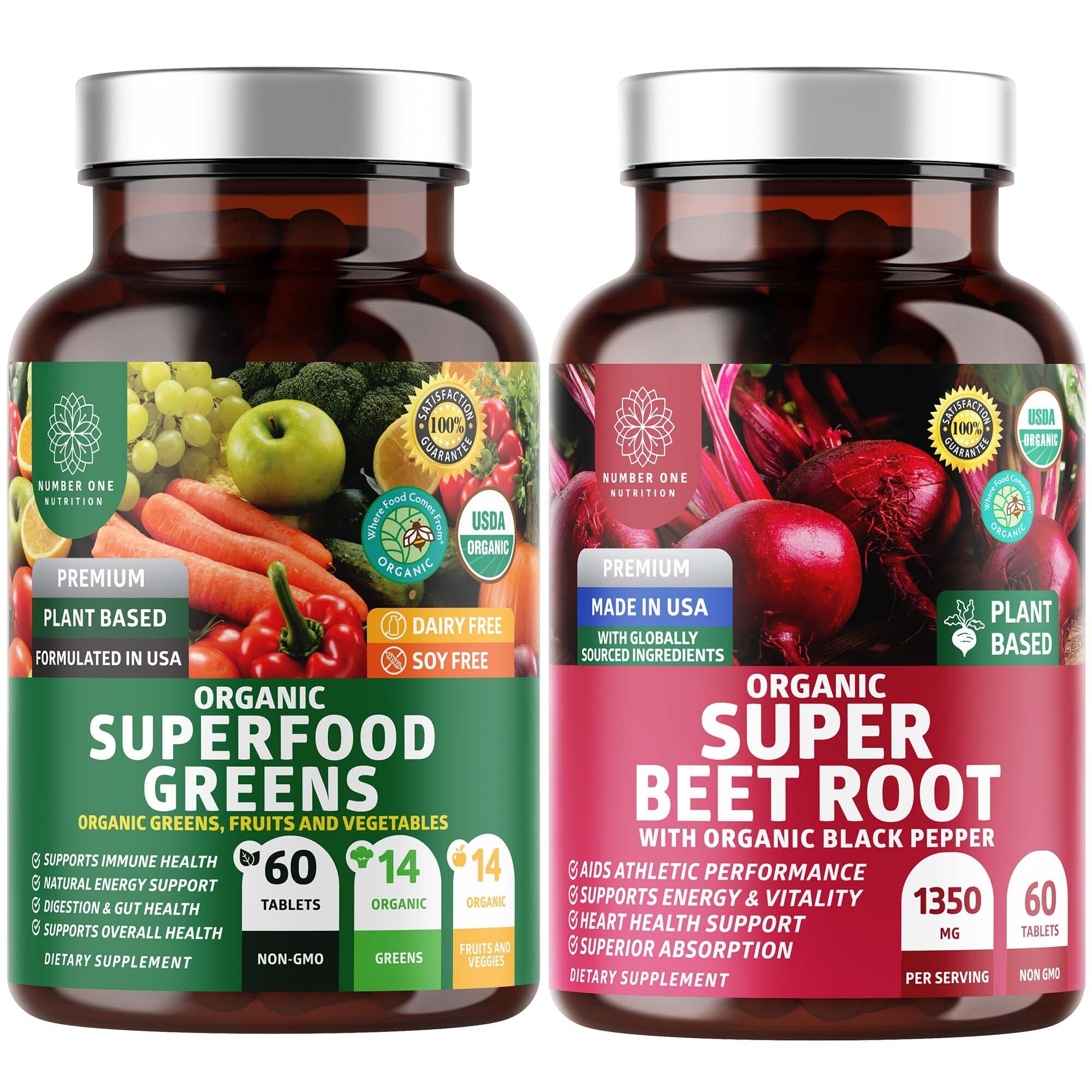 Number One Nutrition N1N Premium and Organic Superfood Greens and Beet Root Tablets for Immunity and Antioxidant Support Packed with Alfalfa Spirulina and Barley Grass 120 Tablets