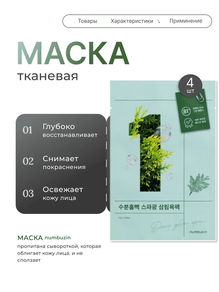 Тканевая маска Numbuzin No.1 Dewy Glow Spa Sheet Mask содержит 81 % кипарисовой воды и экстракт хауттюйнии сердцевидной, которые обеспечивают превосходное восстанавливающее и успокаивающее действие. Маска эффективно питает и осветляет тусклую кожу, дарит антиоксидантный уход, улучшает состояние кожи, делая ее яркой и сияющей, выравнивает тон кожи, успокаивает раздражения и покраснения, работает на осветление несовершенств кожи, таких как веснушки, пост-акне и пигментация. Способ применения: