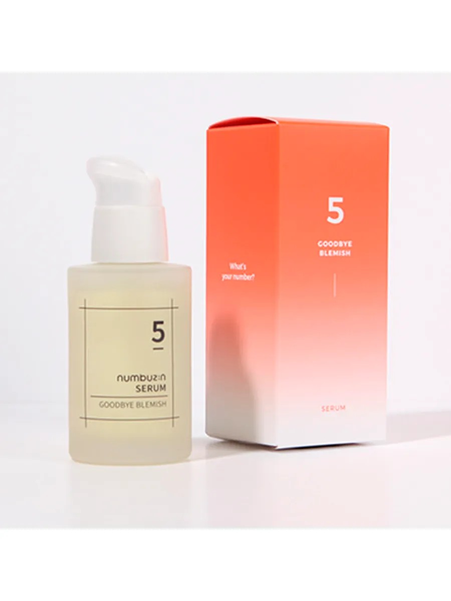 Осветляющая сыворотка от постакне с облепихой и витамином C numbuzin No.5 Goodbye Blemish Serum выравнивает тон, уменьшает выраженность покраснений и следов от акне, подавляет воспалительный процесс, дарит естественное сияние. Препятствует образованию новых пигментных пятен, обеспечивает антиоксидантную защиту, не вызывает раздражения и сухости. Имеет лёгкую гелевую текстуру, впитывается без липкости. Формула, основанная на экстракте облепихи, содержит 3 вида витамина C, ниацинамид, масла цедры апельсина, лимона и лайма, экстракты дерева ним, водорослей, куркумы, ромашки, базилика и солодки, а также пантенол и гиалуроновую кислоту.