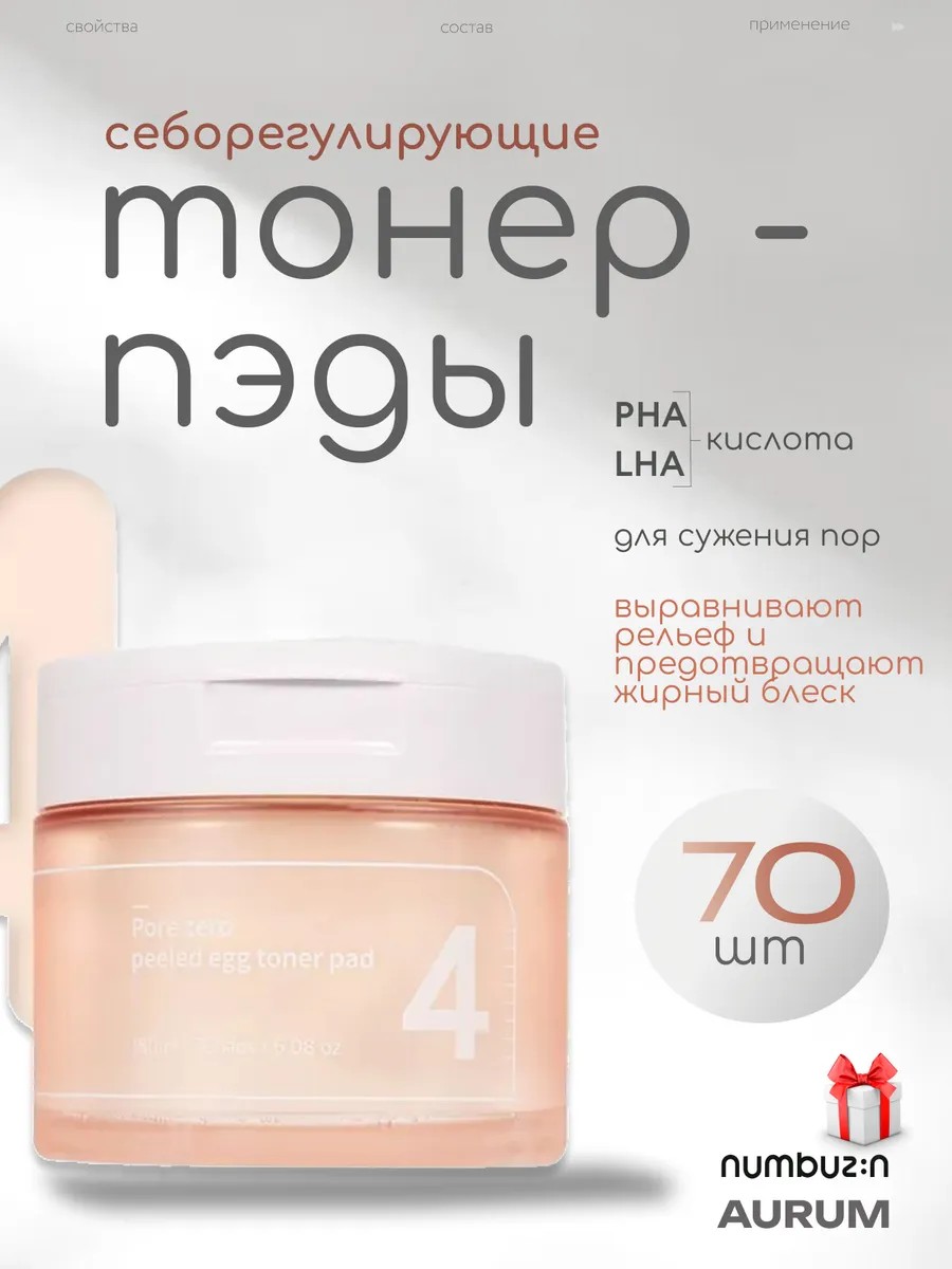 | Комплектация | Себорегулирующие тонер-пэды Numbuzin; подарок |