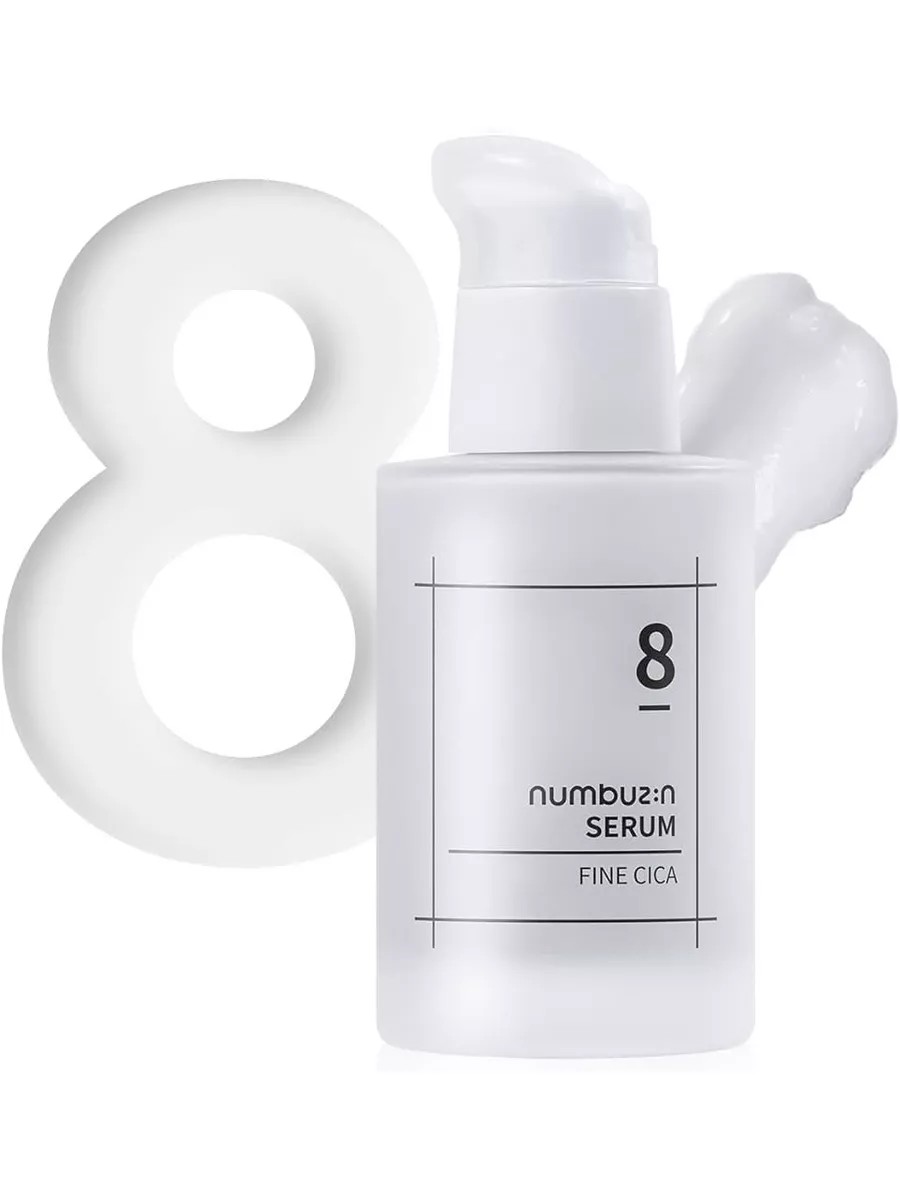 Успокаивающая сыворотка Numbuzin No. 8 Fine Cica Serum cодержит центеллу азиатскую, которая укрепляет кожный барьер и делает цвет лица более здоровым.