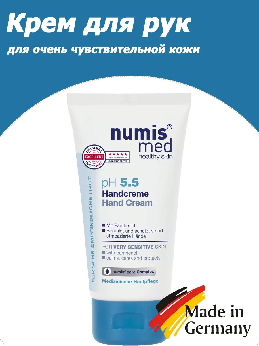 NUMIS MED pH 5.5 Крем для рук - идеальное решение для очень чувствительной кожи рук. Произведенный в Германии, этот крем содержит пантенол, который немедленно успокаивает и защищает напряженные руки. Благодаря отсутствию силиконов, парабенов, минерального масла и микропластика, крем для рук NUMIS MED pH 5.5 интенсивно увлажняет и регенерирует кожу, не вызывая раздражения. Его pH-сбалансированная формула быстро впитывается, обеспечивая мягкое очищение и уход за кожей. Комплекс активных ингредиентов numis care увлажняет и поддерживает естественную защитную функцию кожи, помогая восстановить и смягчить стрессовую кожу. Продукт проверен дерматологами и обеспечивает отличную переносимость. Содержащийся в креме пантенол стимулирует образование новых клеток кожи и усиливает регенерацию кожи. Веганский продукт с успокаивающим ингредиентом Симкалмин обеспечивает нежный уход за чувствительной кожей рук. Для защиты, успокоения и регенерации вашей кожи, обратитесь к Нумис Мед pH 5.5 Крему для рук. Наносите несколько раз в день для максимального эффекта. Восстановите здоровье и красоту своих рук с помощью этого уникального продукта.
