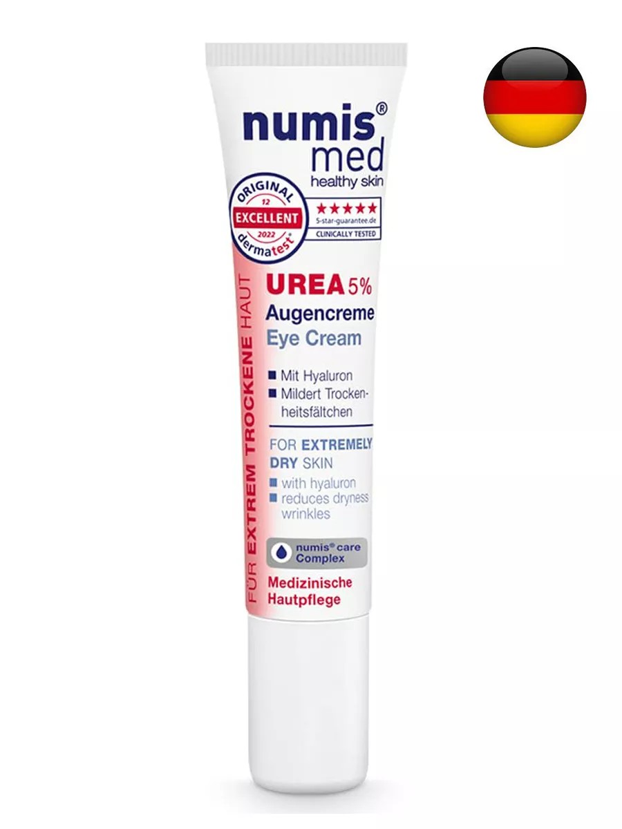 Обретите молодость и красоту вашего взгляда с NUMIS MED UREA 5% Кремом для контура глаз с гиалуроновой кислотой! Этот антивозрастной крем, произведенный в Германии, содержит уникальный комплекс активных ингредиентов, включая 5% мочевины и гиалуроновую кислоту, которые регенерируют очень сухие участки вокруг глаз и удерживают влагу на протяжении всего дня.Длинноцепочечная гиалуроновая кислота обеспечивает мгновенный эффект, увлажняя кожу поверхностной влагой, в то время как короткоцепочечная гиалуроновая кислота проникает в глубокие слои кожи, уменьшая морщины, вызванные сухостью. Кроме того, NUMIS MED UREA 5% Крем снимает зуд и напряжение, обеспечивая защиту от дальнейшего высыхания кожи. Этот крем для глаз против морщин был удостоен 5-звездочного знака Dermatest и не содержит вызывающих аллергию отдушек, силиконов и парабенов, что делает его идеальным выбором для чувствительной кожи. КОМПЛЕКС NUMIS CARE с гидролактолом и успокаивающими кожу компонентами обеспечивает укрепляющий и увлажняющий уход, защищая кожу от обезвоживания. Не жертвуйте качеством ухода за вашей кожей! Попробуйте NUMIS MED UREA 5% Крем для контура глаз с гиалуроновой кислотой и наслаждайтесь результатами уже сегодня. Уходовая немецкая косметика для ценителей красоты и здоровья вашей кожи!
