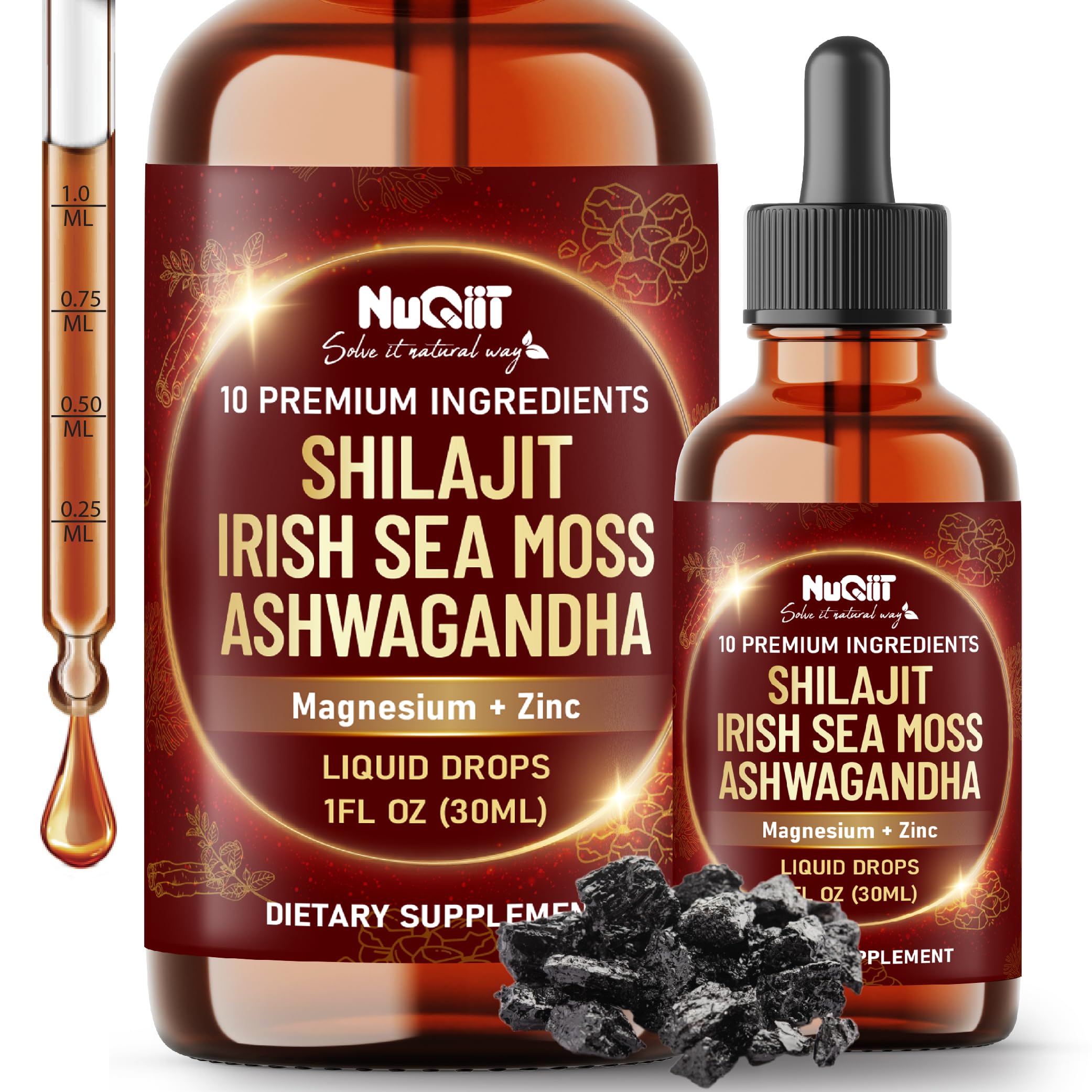 NUQIIT 10in1 Shilajit Liquid Drops by Penhoment with Sea Moss Ashwagandha Zinc Magnesium Liquid Vitamins for Women and Men - 1 FL Oz - 30 Day Supply