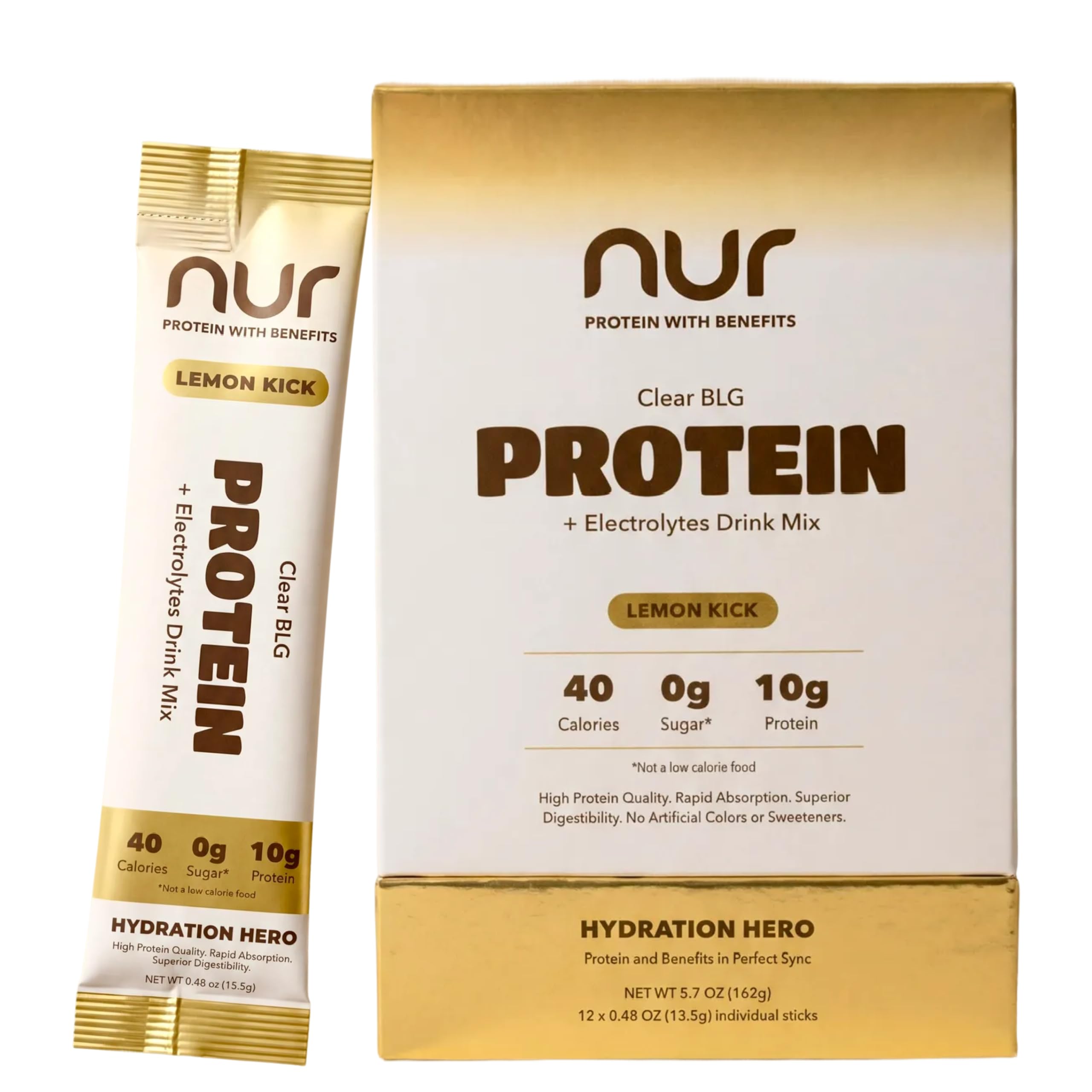 NUR Clear Whey Protein + Electrolytes Drink Mix Fermented BLG Single-Serve Sticks Lemon Kick 12-Pack Lactose-Free Keto-Friendly Zero Sugar No Artificial Sweeteners Daily Hydration