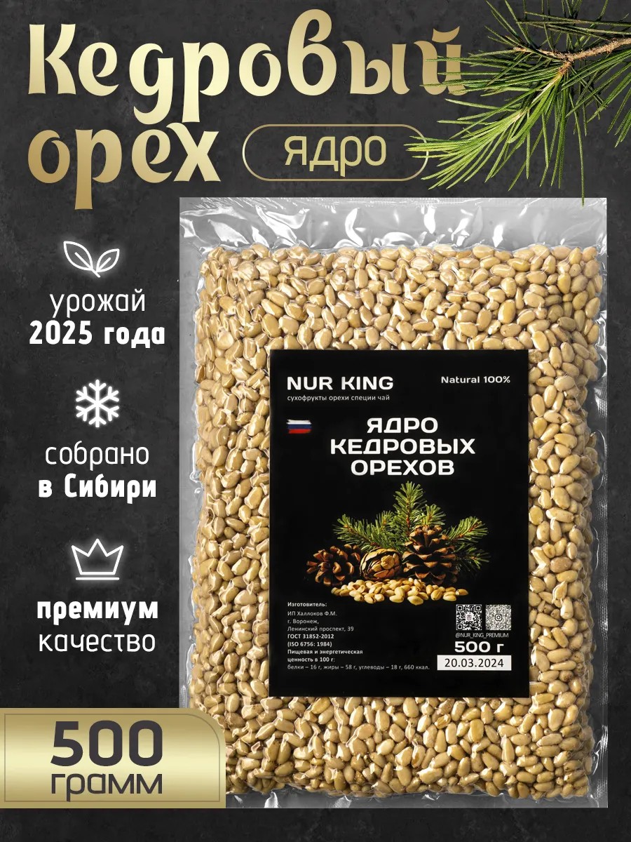 Ядро кедрового ореха - это натуральный и диетический продукт, который является идеальным выбором для веганов и любителей здорового питания. Кедровые орешки упакованы в вакуумную упаковку, чтобы сохранить свежесть и питательные свойства продукта. Герметичная упаковка гарантирует долгий срок хранения. Продукт содержит практически все незаменимые аминокислоты, жирные кислоты, включая омега-3 и омега-6, а также витамины B1-9, A, C, E, K и P, а также важнейшие микро- и макроэлементы. Этот продукт рекомендуется при авитаминозе, упадке сил и ослаблении иммунитета. Ядро кедрового ореха готово для непосредственного употребления в пищу и может быть использовано в качестве компонентов для салатов, выпечки и других блюд. Кедровый орех добавит неповторимый вкус и пользу вашему рациону. Произведено в Сибири, где природные условия и экологическая чистота обеспечивают высокое качество продукта. Вы можете выбрать упаковку ядра кедрового ореха весом 100, 200 или 500 грамм. Попробуйте этот суперфуд и наслаждайтесь его превосходными вкусовыми и питательными качествами.