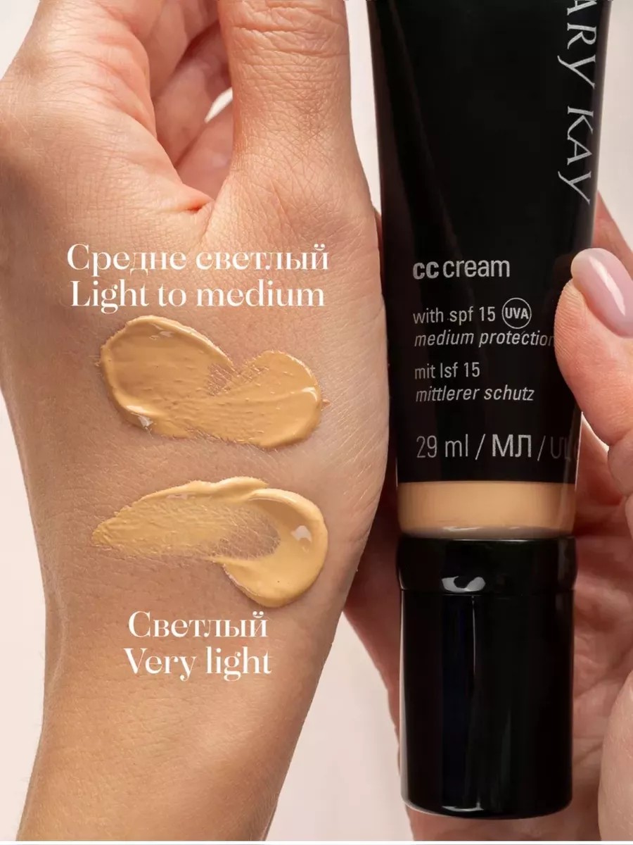 Солнцезащитный тональный СС-крем для лица c SPF 15 для всех типов кожи, 2ой тон средне-светлый light-to-medium. Формула этого крема одновременно корректирует вашу кожу и ухаживает за ней!8 преимуществ в одном средстве. **ЗАЩИЩАЕТ**. Спектр защиты широкого действия SPF 15 защищает от UVA- и UVB-лучей.- **ПРИДАЕТ СИЯНИЕ**. Мгновенно усиливает сияние кожи и улучшает цвет лица. Содержит ниацинамид и аскорбил глюкозид, которые известны тем, что делают кожу более гладкой и освежают ее. **КОРРЕКТИРУЕТ НЕДОСТАТКИ, НЕ УТЯЖЕЛЯЯ ВНЕШНИЙ ВИД**. Пигменты на базе минералов помогают корректировать недостатки кожи и улучшают ее общий вид, при этом средство не выглядит как маска на лице. **СОКРАЩАЕТ ПОКРАСНЕНИЯ**. Придает лицу рельефность и минимизирует видимость покраснений кожи. В формуле содержатся витамин E и растительные экстракты, которые помогают смягчить и успокоить кожу. **УМЕНЬШАЕТ ВИДИМЫЕ ПРИЗНАКИ СТАРЕНИЯ**. **ЗАЩИЩАЕТ ОТ НЕГАТИВНОГО ВОЗДЕЙСТВИЯ ОКРУЖАЮЩЕЙ СРЕДЫ**Срок годности