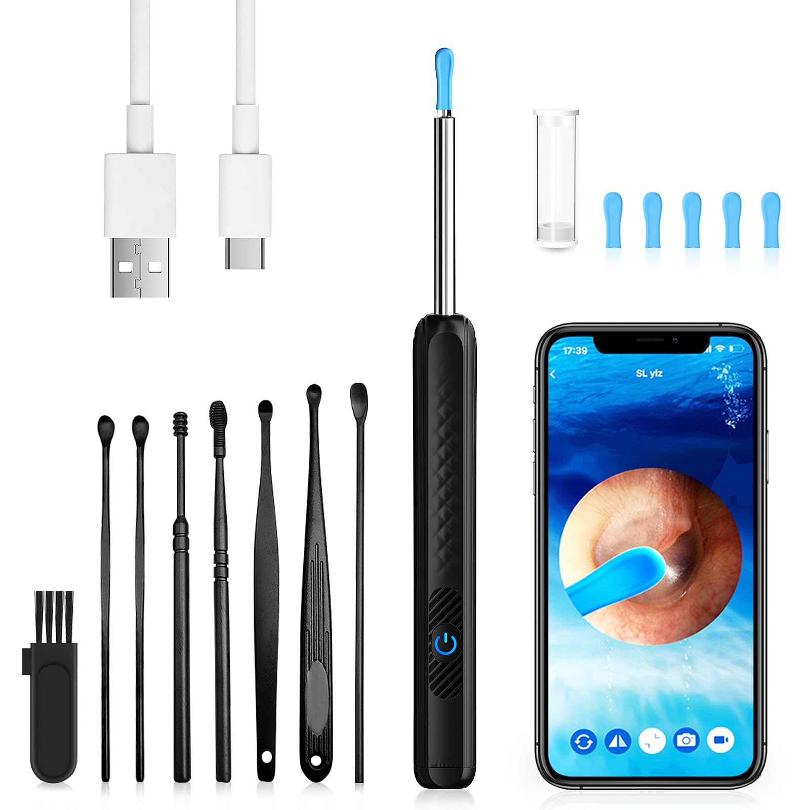 Ear Wax Removal, Ear Cleaner with 1080P HD Camera,Ear Wax Cleaner with 8pcs Ear Set, Ear Wax Removal Tool Camera for iOS and Android (Black)