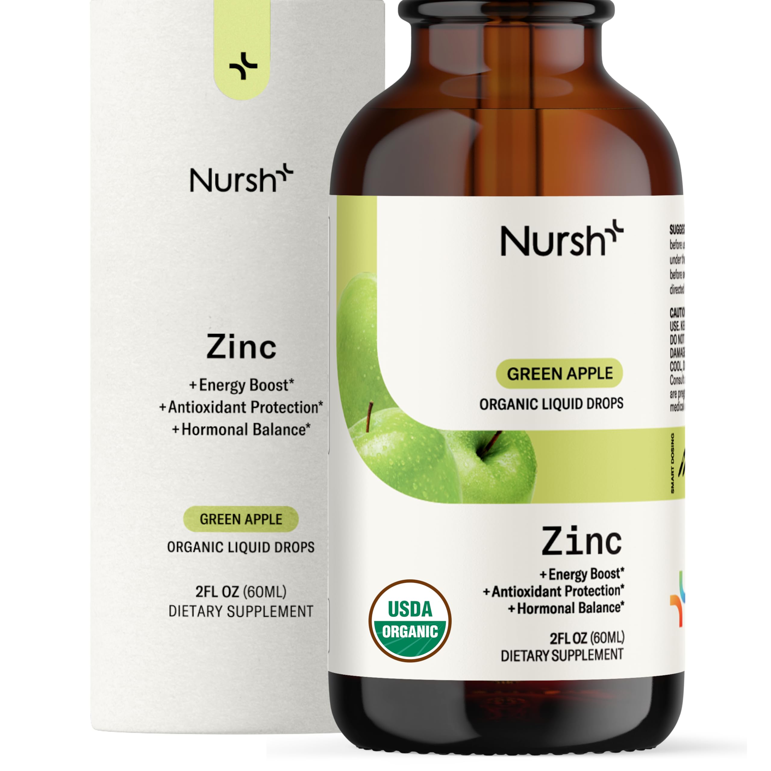 Nursh+ Daily Organic Liquid Zinc Drops Fast-Absorbing Immune Support & Skin Health for Kids & Adults 7mg Per Serving USDA Certified Organic & Vegan 2 fl oz
