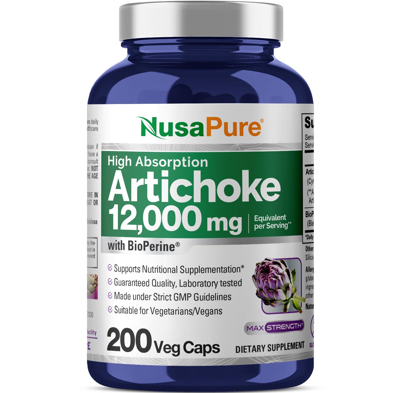 NusaPure Artichoke 20:1 Extract 600 mg Equivalent to 12 000mg 200 Veggie caps (Non-GMO Gluten Free)