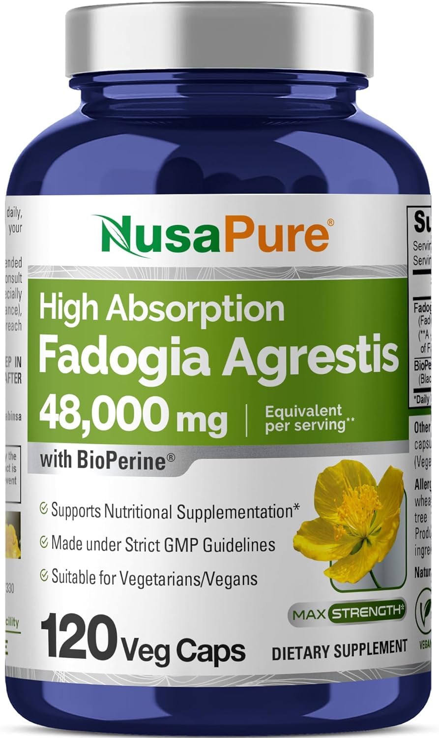 NusaPure Fadogia Agrestis 40:1 Extract 1200 mg Equivalent to 48 000mg Per Serving 120 Vegan Capsules GMO Free Supplement Bioperine