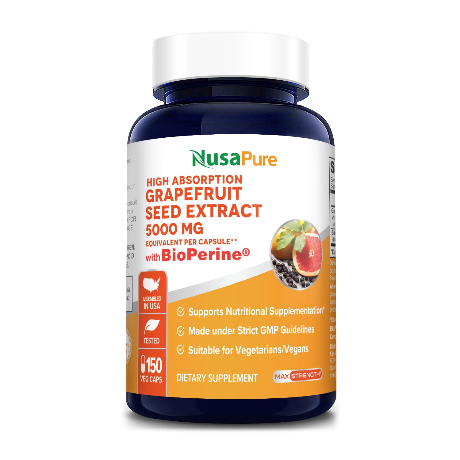 NusaPure Grapefruit Extract 5 000 mg per Capsule (Extract 10:1) Bioperine 150 Veggie caps (Vegan Gluten Free Non-GMO)