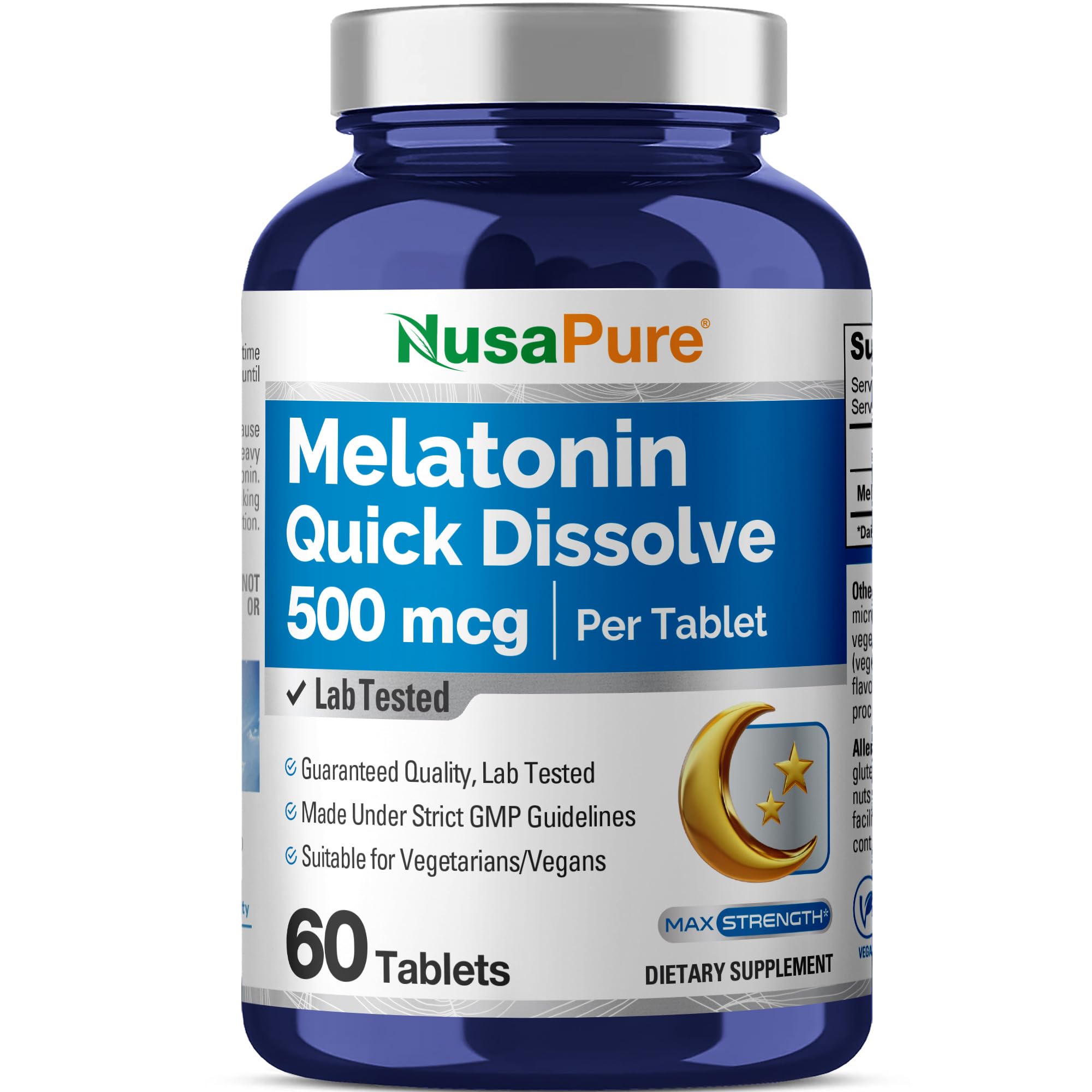 NusaPure Melatonin Quick Dissolve 500 mcg Per 60 Tablets Dietary Supplement Vegan Non-GMO