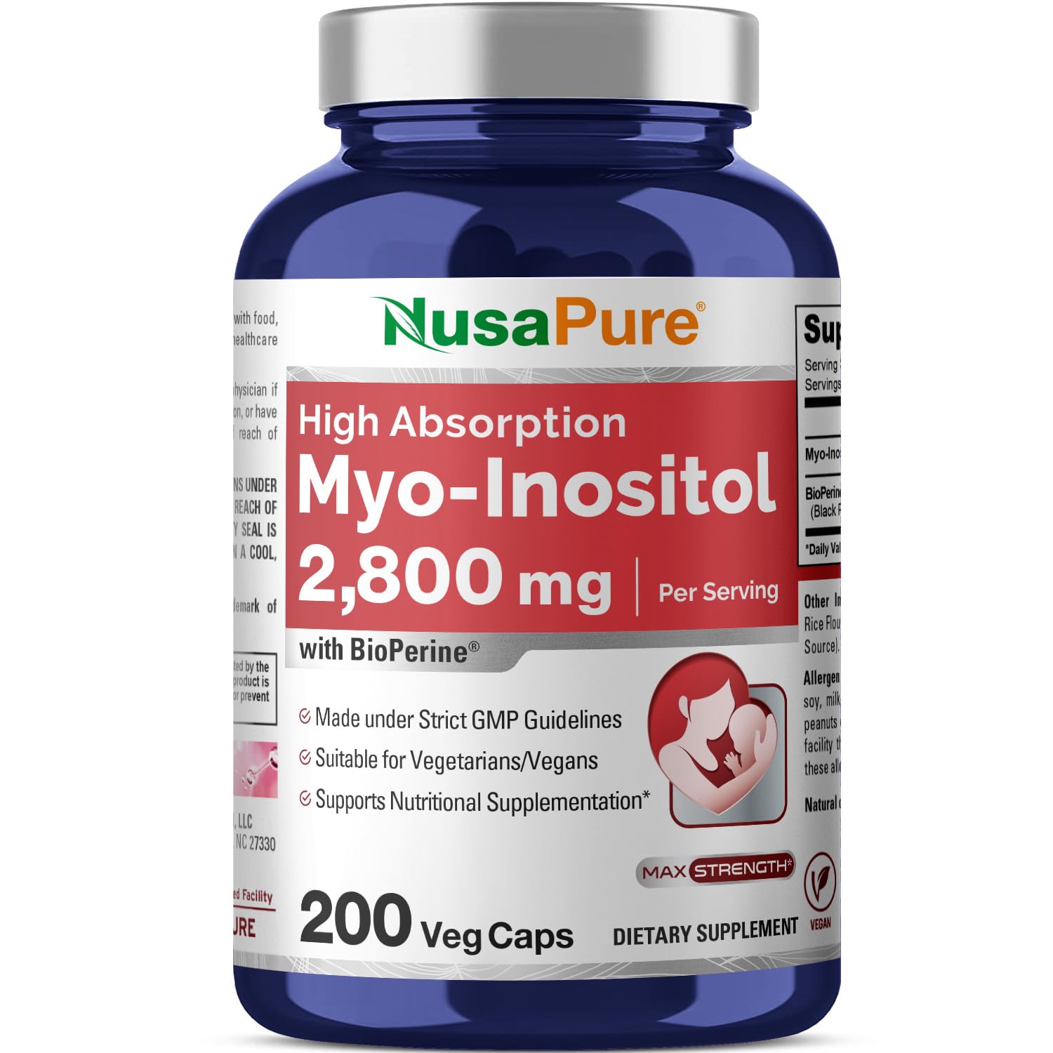 NusaPure Myo-Inositol - Suitable for Vegetarian/Vegan Non - GMO - 2800mg 200 Capsules