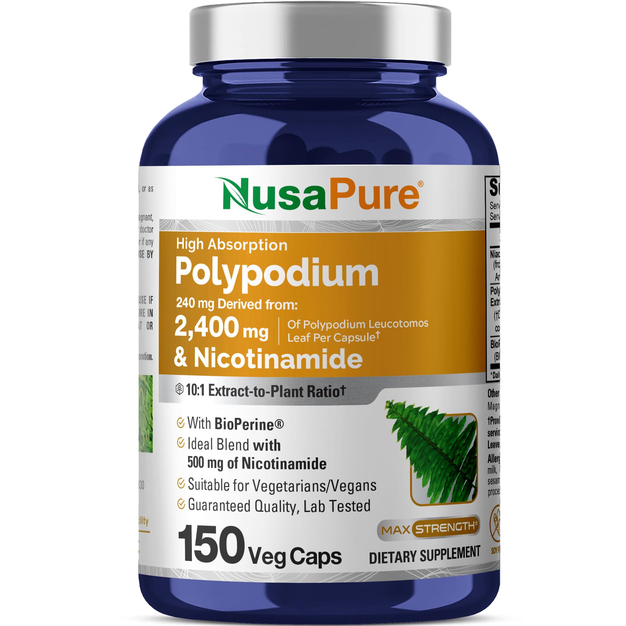 NusaPure Polypodium Nicotinamide 10:1 Extract 240 mg Equivalent to 2 400 mg per Veg Caps - 150 Count (Non-GMO Soyfree Bioperine)