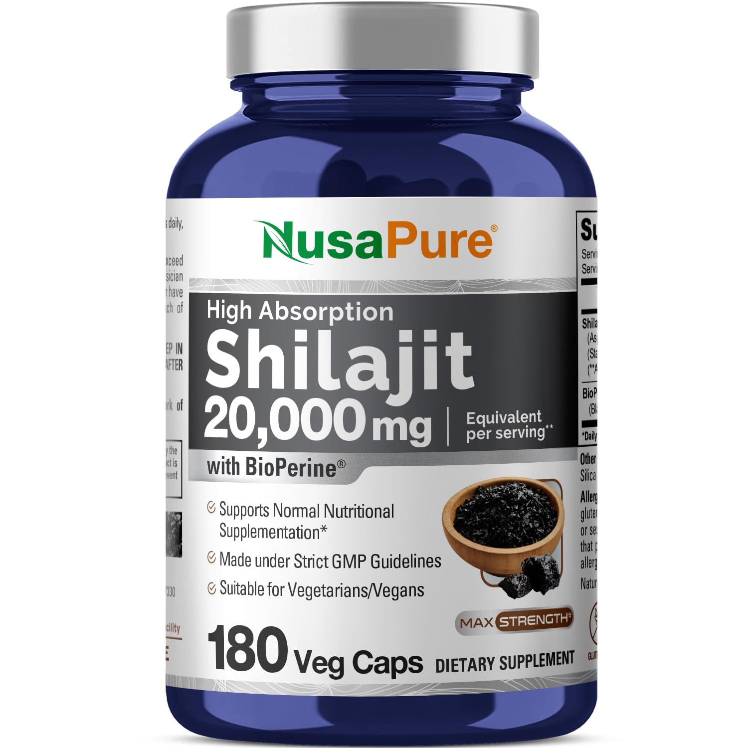 NusaPure Shilajit 20 000mg per Serving 180 Veggie Caps Non-GMO Gluten Free Bioperine 180 Count (Pack of 1)
