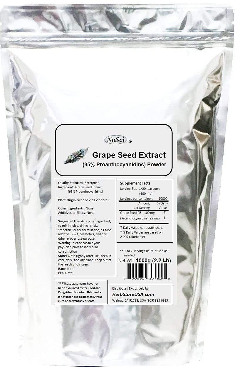 NuSci Grape Seed Extract Powder Standardized 95% Proanthocyanidins OPC (1000 grams (2.2 lb)) GMO Free Non-Irradiated by NuSci