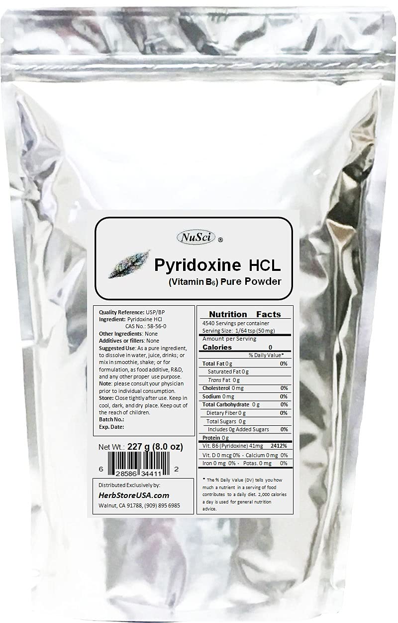 NuSci Pyridoxine HCl Vitamin B6 Pure Powder 8.0 oz (227 g)