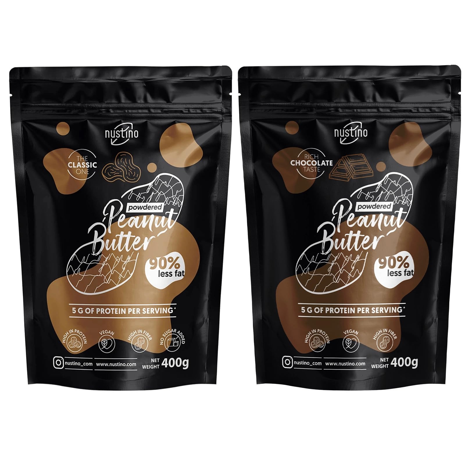 Nustino Beurre de Cacahuète en Poudre – Pack de 2 Classic 400g Chocolat 400g Riche en Protéines Faible en Matières Grasses Délicieux Sain