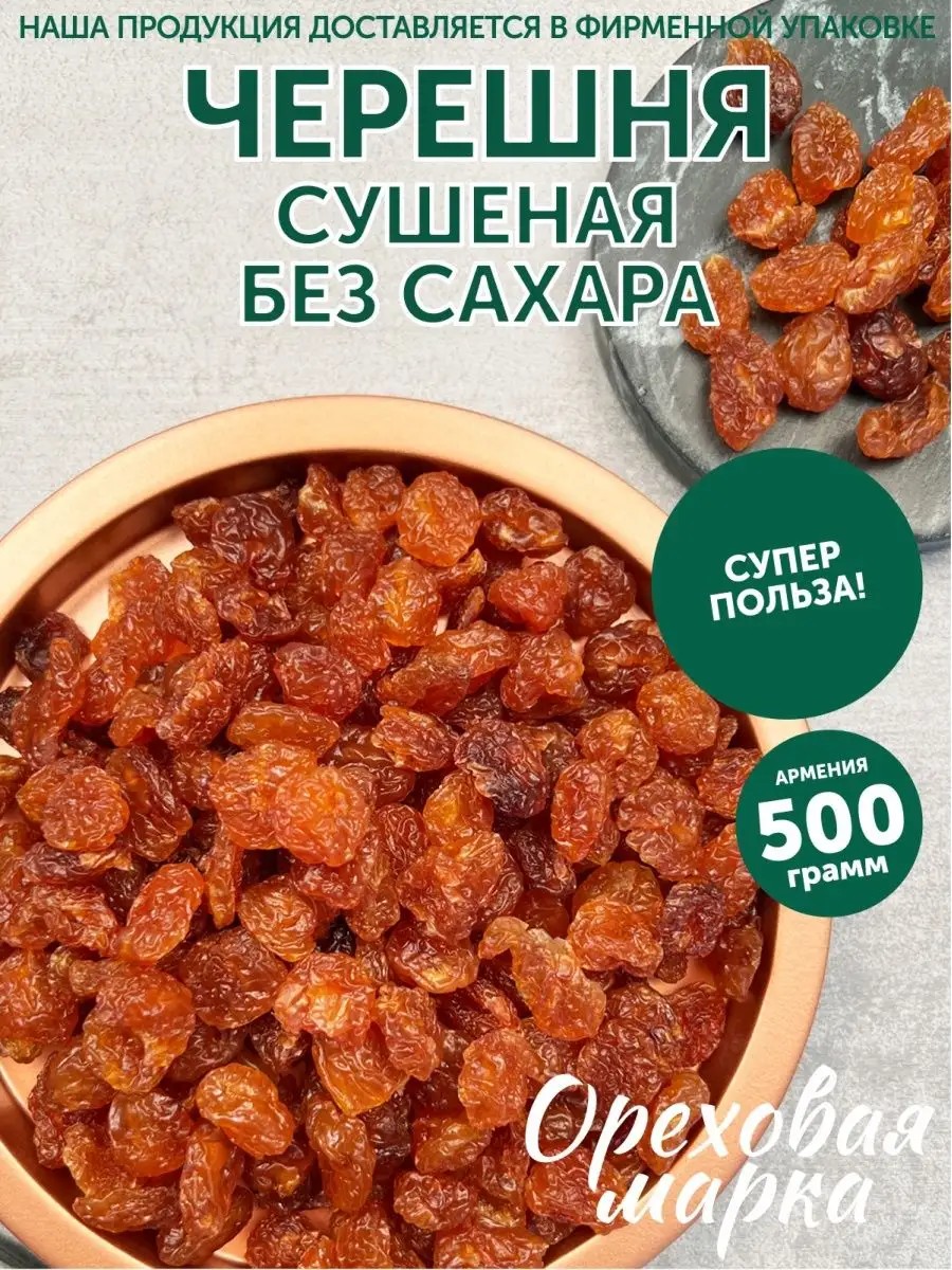 Сочная сладкая черешня - королева летнего сезона! Но период ее созревания очень короткий, а так хочется насладиться этой потрясающей ягодой! В сушеной черешне вы найдете высокую концентрацию пользы. Ее богатый состав мгновенно заряжает организм нужными витаминами и микроэлементами. Природный антиоксидант Витамин С поддерживает иммунитет и продлевает молодость, а высокая концентрация витамина Bподдерживает нервную систему в балансе и улучшает настроение. Вещество кумарин обладает ярко выраженным противовоспалительным свойством, а регулярное употребление этой вкусной ягоды - это легкий путь к стройной фигуре и долголетию! Отличный метаболизм, крепкое здоровье и наслаждение вкусом гарантированы! Натуральная сушеная черешня без сахара идеально подходят любителям диетической и постной еды, а также незаменимый вегетарианский и веганский продукт, надежный друг любителей спорта и тех, кто предпочитает физические нагрузки. Это приятное лакомство легко заменит Вам конфеты и булочки Вяленая черешня это правильная и полезная сладость, которую можно положить с собой в ланч бокс или шопер, используя для здорового перекуса как фитнес или спортивный батончик, и отправиться на тренировку, незаменимая вещь во время учебы в школе, как полезный перекус для детей. Этот сухофрукт бесценно важен тем, кто предпочитает правильное и здоровое питание каждый день. Отборные сухофрукты из черешни могут быть отличным дополнением сладкого и вкусного подарка бокса девушке, маме, папе, подруге или учителю, отлично подойдет к подарку на любой праздник 8 марта, день рождения, юбилей, новый год. Здоровое питание каждый день — это просто! Бренд «Ореховая Марка» — полезный перекус на каждый день: орехи, сухофрукты, веганские продукты для взрослых и детей, беременных, веганов и вегетарианцев, диабетиков и тех, кто выбирает здоровое питание каждый день. «Ореховая Марка»- новый стандарт качества и свежести: расфасовка отборного товара в эко-упаковку в день заказа. Каждый заказ проходит тщательную проверку на всех этапах: от фасовки до транспортировки, поэтому мы гарантируем высокое качество! Сухофрукты и орехи по-настоящему свежие, полезные и вкусные. Все только лучшее и только для Вас! Широкий спектр лакомств на любой вкус: вкусняшки в шоколаде, в глазури, в меду, конфеты, печенье, сушеные и вяленые сухофрукты, продукты без сахара, цукаты и фруктовые дольки для выпечки, кислые корки цитрусовые засахаренные, наборы в подарок и другие восточные сладости для чая. Наша продукция подходит тем, кто придерживается пп-принципов, на диете, предпочитает полезный перекус без ГМО и глютена, подходит при похудении. Мы поставляем продукты ассорти со всего света: из России, Китая, Японии, Европы, Азии, США, Турции, Армении, Узбекистана.