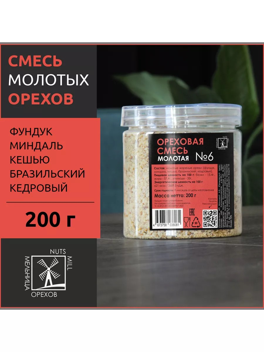 МЕЛЬНИЦА ОРЕХОВ Ореховая смесь жареная молотая дробленная 200гр.