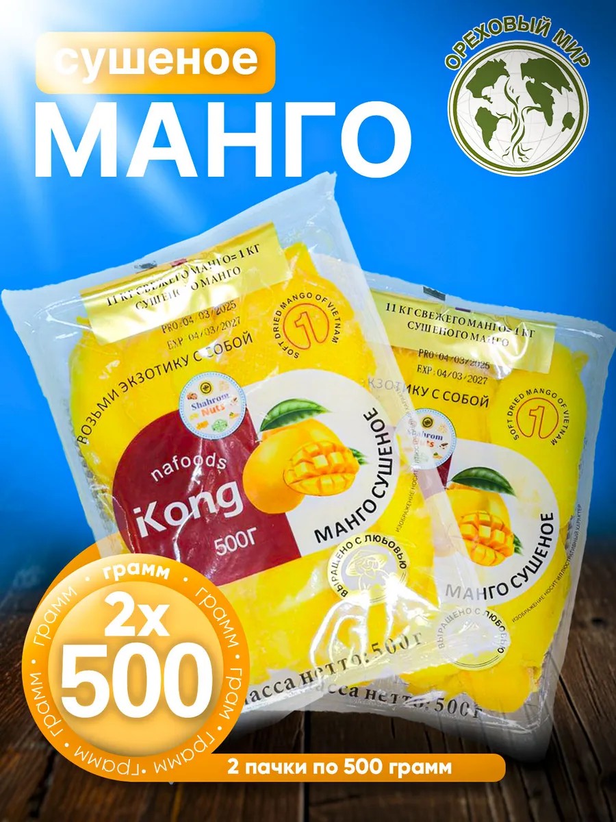 Комплектацияманго сушеный 2 шт по 500 г в упаковке
