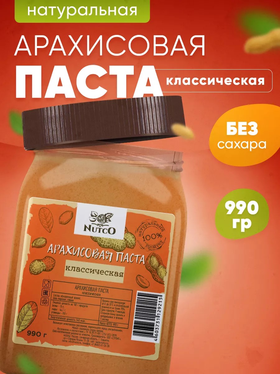 NUTCO Арахисовая паста без сахара натуральная с солью 990 г